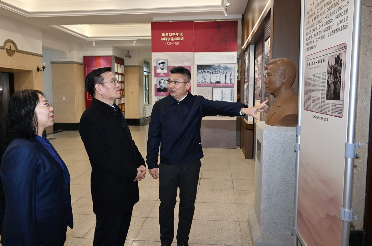 在威廉体育williamhill,田辉调研了教育部医药基础研究创新中心实验室、病理生物学教育部重点实验室、动物实验中心及生物样本库等科研平台,实地察看平台建设情况,听取公司在团队建设、团队队伍、人才培养和科研创新等方面的汇报。在病理生物学教育部重点实验室标本陈列馆,他仔细察看馆藏标本和中国数字人解剖系统演示,强调要加强对珍贵教学科研资源的保护与利用。时值白求恩逝世86周年纪念日,田辉指出,要大力传承弘扬白求恩精神,面向国家重大战略需求,深化基础医学与临床医学交叉融合,加快科研成果转化与应用,努力建设具有国际影响力的医学创新高地。
