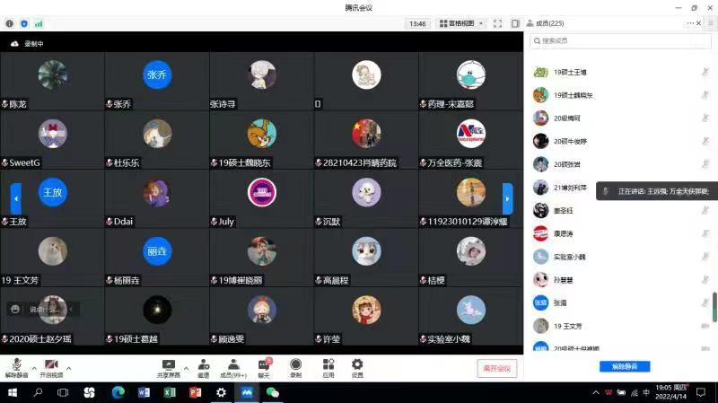在坚决打赢疫情防控阻击战的关键时期,为进一步加强团员青年的责任担当,充分发挥共青团员在疫情防控工作中的生力军和突击队作用,2022年4月14日,2019级硕士团支部在线上举办“疫情防控,与我同行”主题团日活动。公司团委负责人、研究生辅导员孙佳钰老师以及2019级硕士全体团员参加,会议由2019级团支书金雪主持。