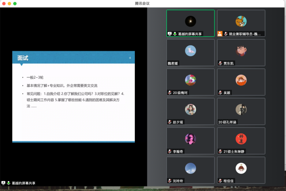 会议最后,孙佳钰老师鼓励大家要立足个人特质与专业特点,拓宽就业渠道、打开就业思路,抓住就业高峰期,调整心态,主动出击;曹书记也叮嘱大家及早进行就业规划、放开视野、坚定信心,积极行动。此次会议加强了对同学们就业择业的科学指导,使同学们了解了当前的就业形势,掌握了一定的求职技巧,为后期高质量就业奠定了良好的基础。
