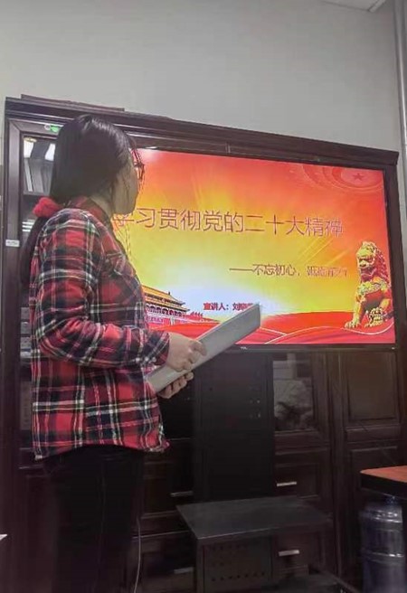 1月29日,刘晓萍同学在河南省巩义市中医院进行了主题宣讲,深刻学习了党的二十大精神,切实传达了要始终坚持中国共产党的领导,深刻领会二十大报告蕴含的新思路、新战略、新举措,主动担难、补台补位,瞄准目标,脚踏实地,踔厉奋发、勇毅前行,为全面建设社会主义现代化国家、全面推进中华民族伟大复兴贡献智慧与力量。