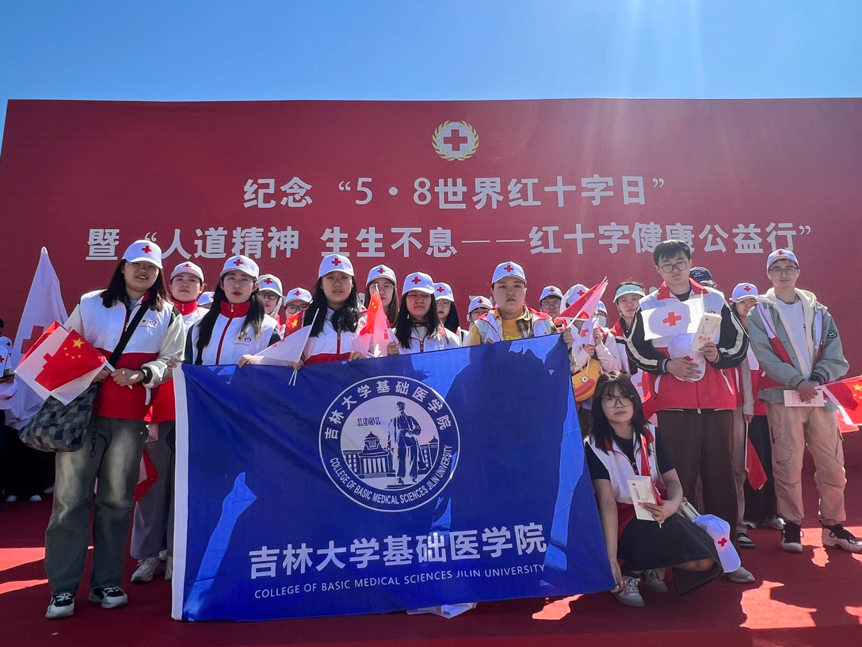 为弘扬“人道、博爱、奉献”的红十字精神,动员更多社会力量参与和支持红十字事业,5月8日,在第77个“世界红十字日”之际,吉林省遗体捐献志愿者服务队、威廉体育williamhill“基础医学之光”志愿者协会一行40余人,来到长春市雕塑公园参加吉林省红十字会主办的“纪念‘5·8世界红十字日’暨‘人道精神,生生不息——红十字健康公益行’宣传义诊活动”。