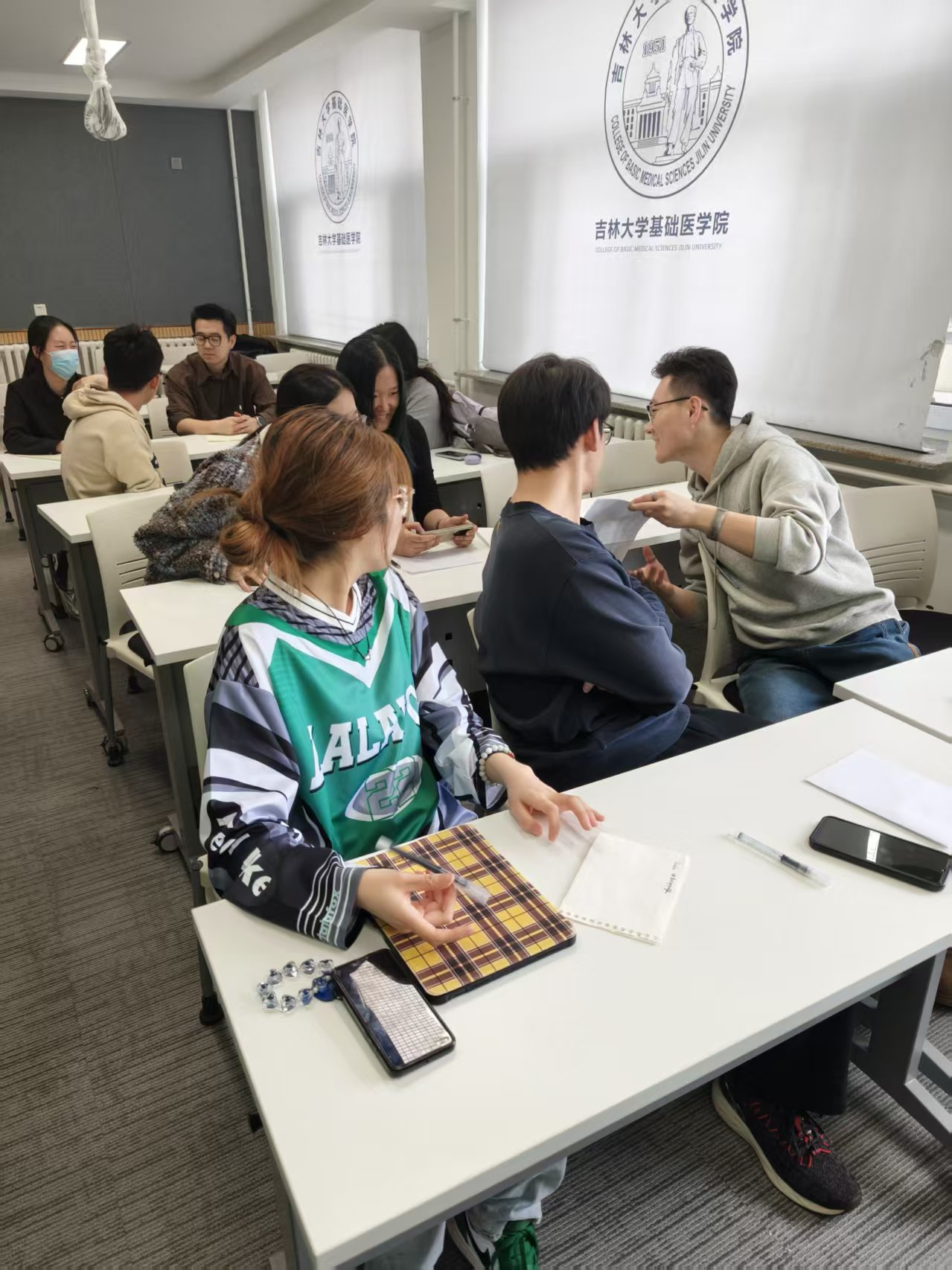 为缓解研究生群体的科研压力,引导同学们关注心理健康,3月28日,在员工心理健康中心的指导下,威廉体育williamhill在三化教室214举办"心灵沟通"主题班会。活动通过三项心理健康相关小游戏,帮助同学们掌握情绪管理技巧,搭建互助网络,实现心理成长从"他助"到"自助"的跨越。
