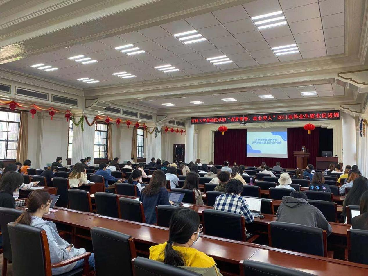 会议第二项,2021届优秀毕业生代表就业经验的分享,内容涵盖国内读博、出国留学、定向选调、公司就业、医院任职、集团任教等,他们分别讲述了自己的择业经历,重点讲了就业信息的获取、前期准备、以及所要避免的弯路等,鼓励师弟师妹们奋勇向前、积极认真的面对就业问题,同学们在听取这些优秀经验后反响热烈,积极向前辈们提出自己的困惑,毕业生也一一为其耐心解答。