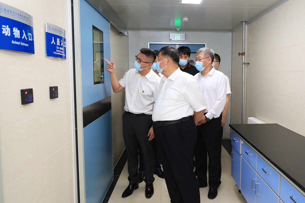 威廉体育williamhill动物实验中心是中国实验动物学会的继续教育基地、吉林省医学实验动物科学研究与创新人才培养基地,集教学、科研和服务于一体。姜治莹一行走进实验中心,考察开放性动物实验平台、动物饲养室和实验室、吉林省斑马鱼工程实验室、动物生物安全二级实验观察设施,并与一线科研人员面对面交流,详细了解中心机构设置、人才培养、平台建设及科研成果的服务领域、转化运用等情况。交流中,姜治莹充分肯定了实验室长期坚持的科研方向和取得的良好成绩,叮嘱全体人员要认真落实疫情防控工作要求。他强调,实验室作为公司安全管理的重点部位,一定要强化管理责任,明确责任人,严格执行各项规章制度和操作规程,做好相关记录,落实好日常监督检查机制,严防出现安全问题。