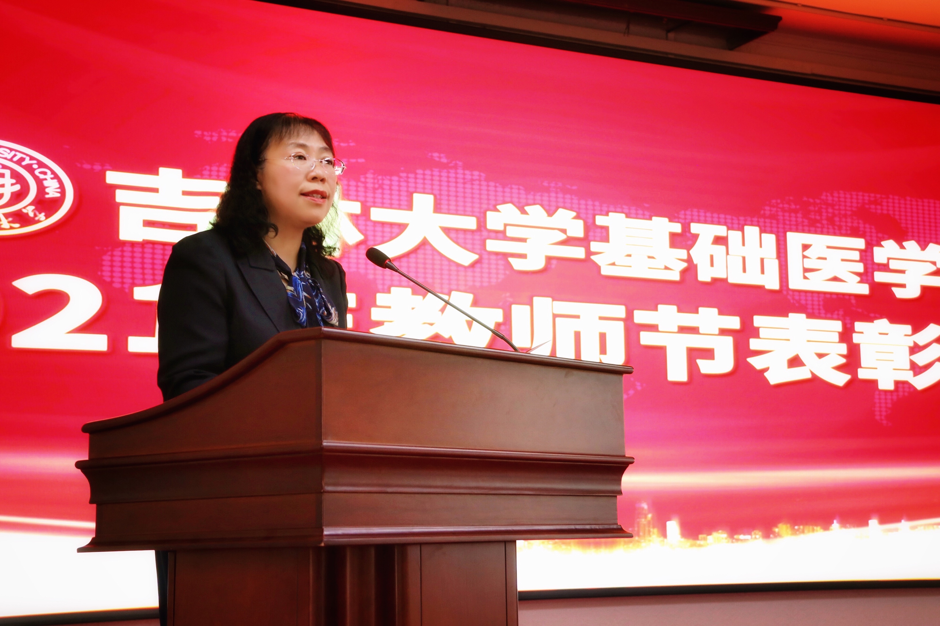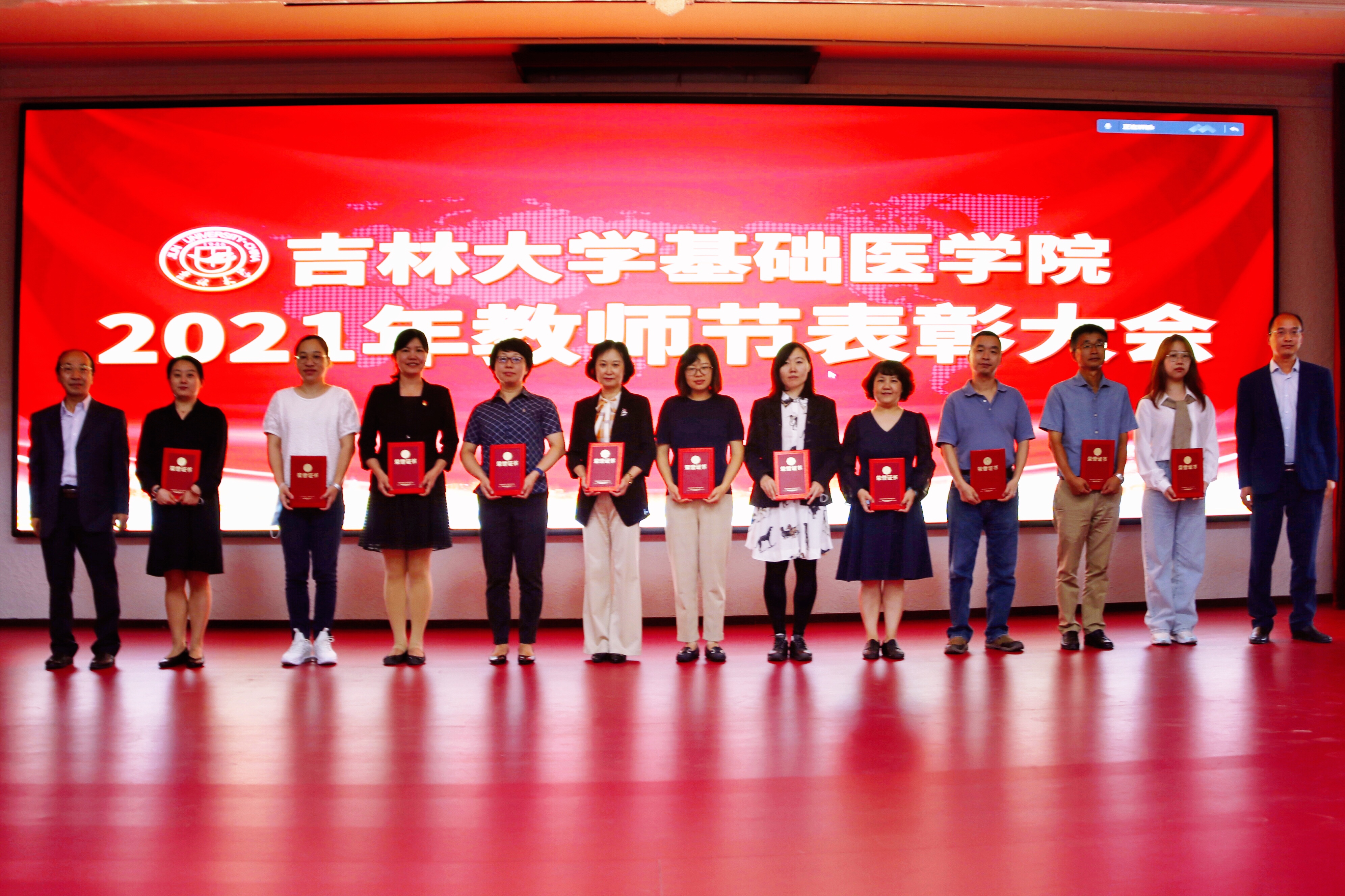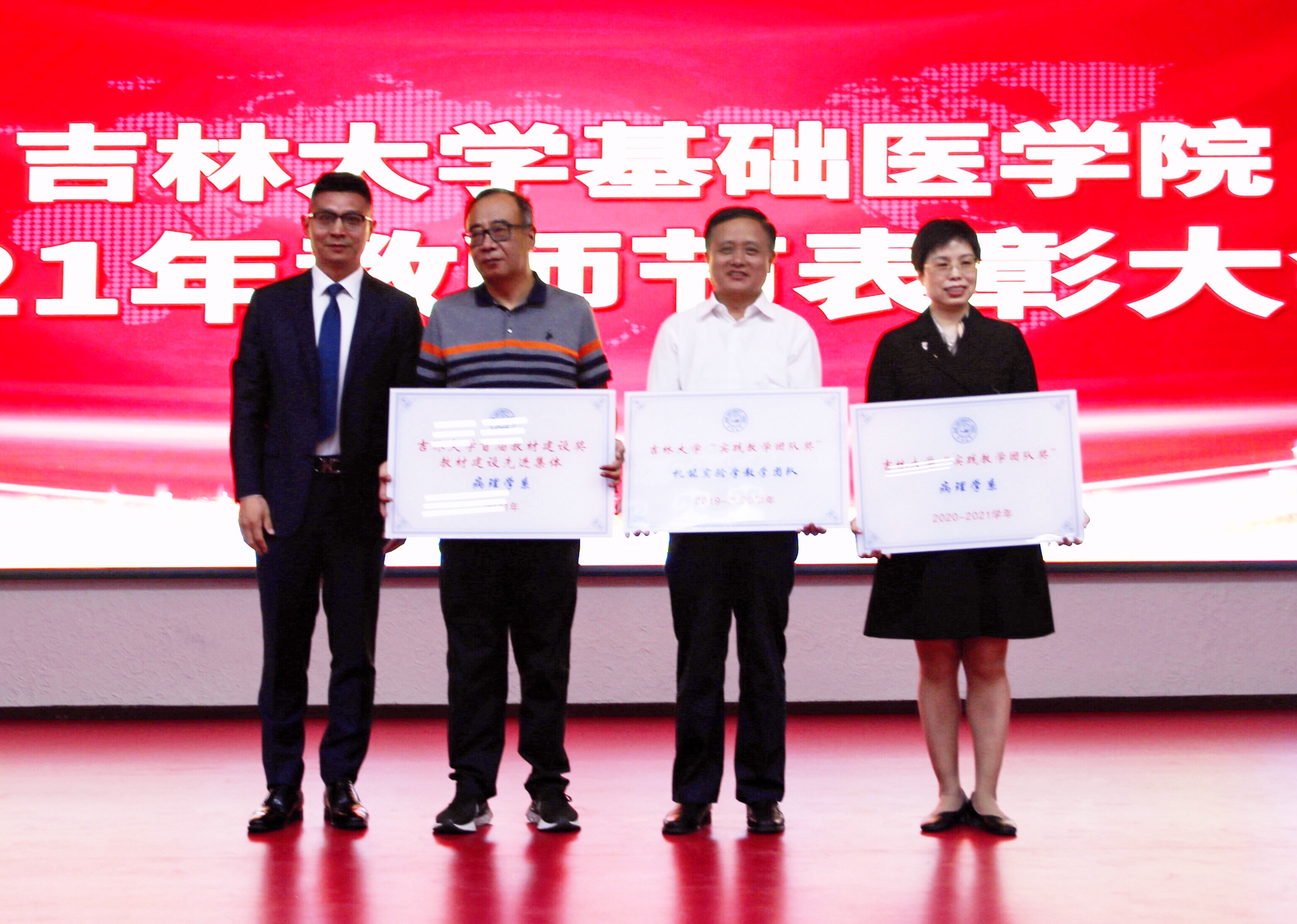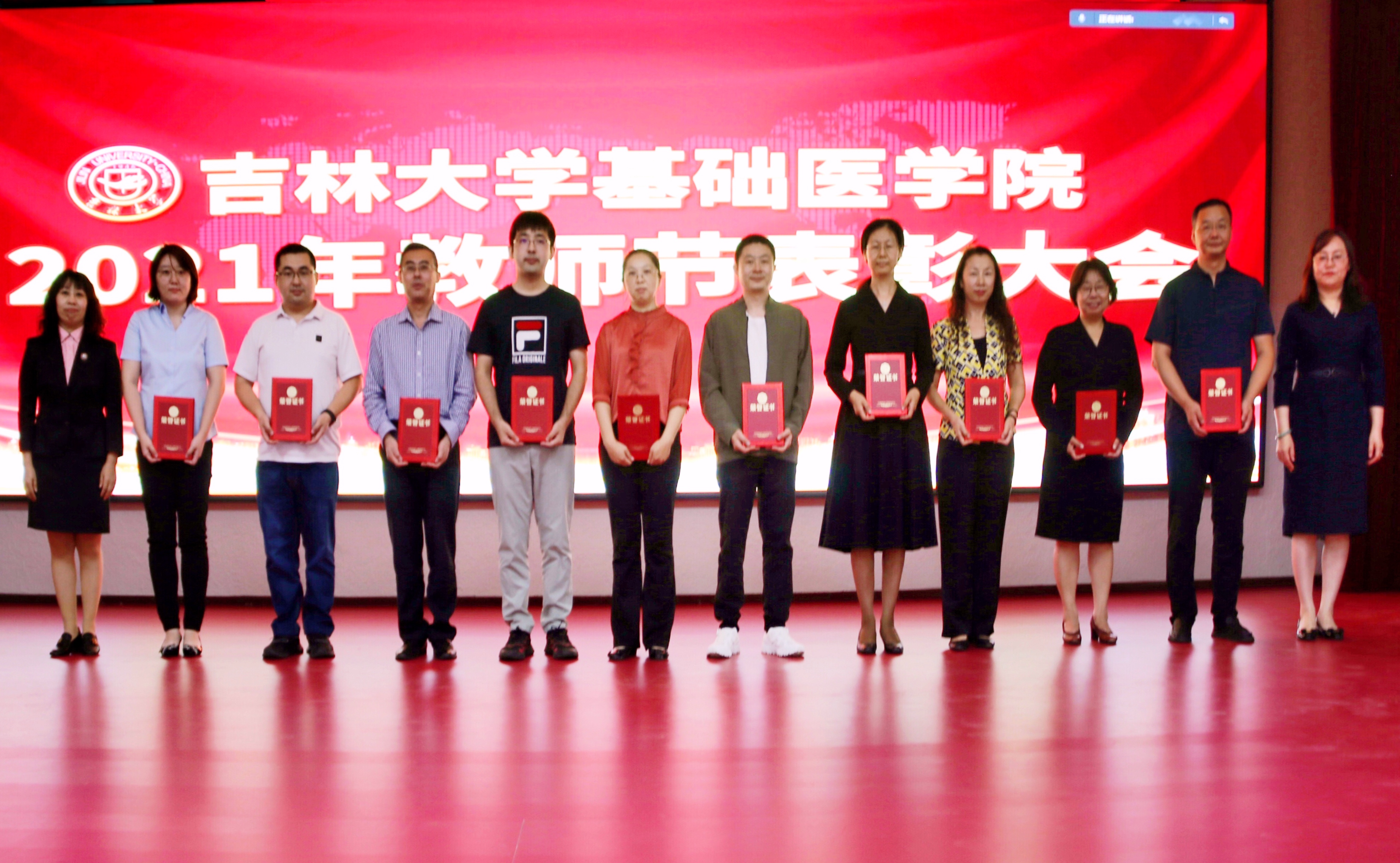 庆祝表彰大会在雄壮的国歌声中开始。首先,由公司党委书记王晓荣宣读了表彰决定,公司授予病理学系等3个团队优秀教师团队称号;王医术等43名教师优秀教师称号;王丽颖等2名教师师德先进个人称号。同时,公司党委号召全院教职工向受表彰的先进集体和个人学习,在深入百年党史学习教育中,赓续红色血脉,传承白求恩精神,为加快医学教育创新发展,推进具有吉大特色的新医科建设和集团双一流建设做出贡献。