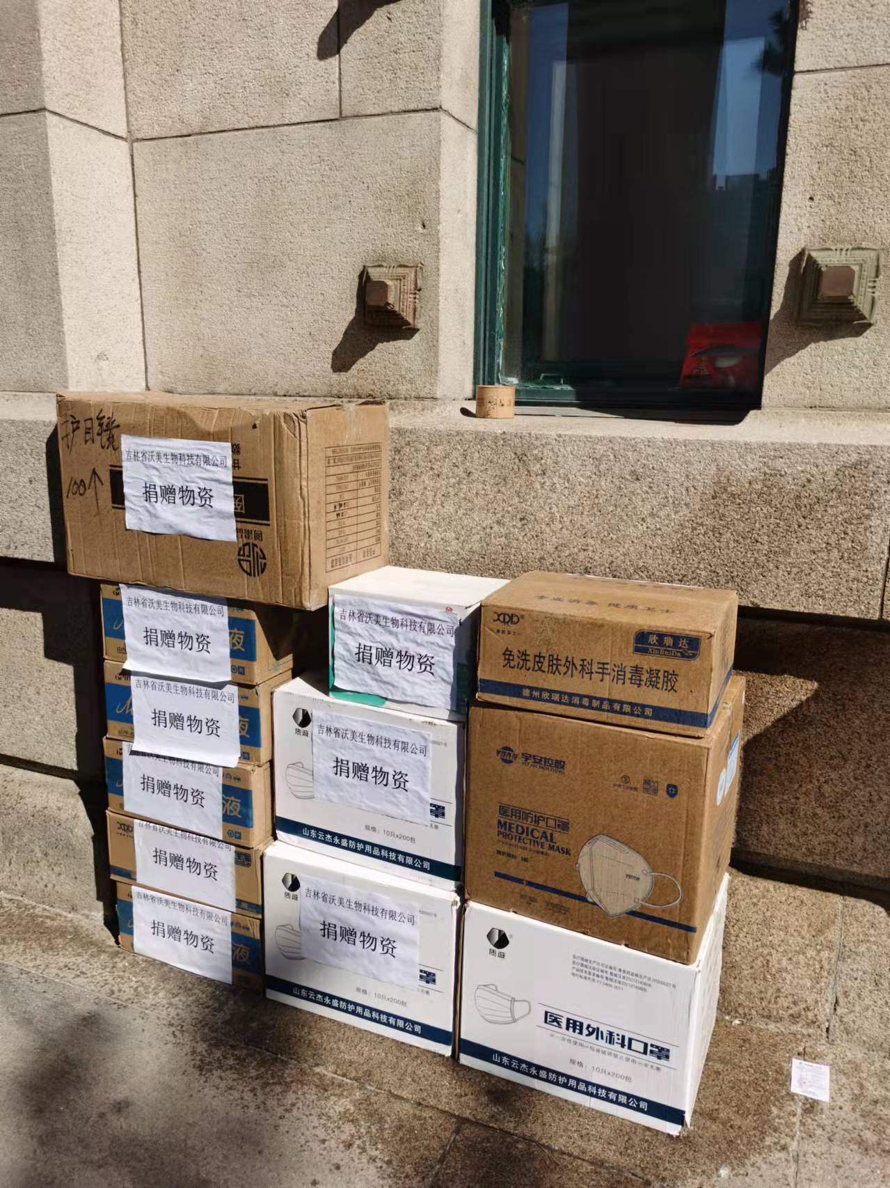 在全力抗击疫情,齐心协力打赢公司疫情防控攻坚战的关键时刻,员工们和社会企业纷纷通过不同途径、以不同方式表达对威廉体育williamhill师生的关心与慰问。自3月15日起,威廉体育williamhill陆续收到姚云鹏员工、北京遥领医疗科技公司何冰员工及吉林省沃美生物科技有限公司、长春市尚宝生物试剂经销处、长春市宏鑫实验仪器经销处等社会企业捐赠的医用外科口罩、N95口罩、75%酒精、医用防护眼镜及医用手套各类防疫物资,总价值10万余元。
