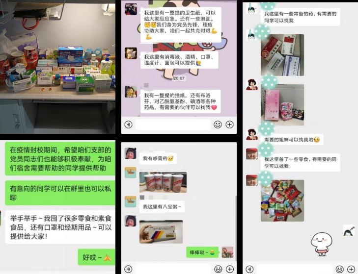 为充分发挥在疫情防控工作期间基层党组织战斗堡垒作用和共产党员先锋模范作用,公司研究生辅导员孙佳钰老师被公司党委任命为前卫北区四公寓师生临时党支部书记和楼长,负责公司一百余名员工的教育管理和服务保障工作以及四公寓楼内四百余名员工的思想政治工作。3月17日下午,临时党支部刚一成立,孙佳钰老师立刻带领支部党员同志召开了第一次线上支部会,会议讨论的第一件事就是如何充分发挥党员的先锋模范带头作用,团结一心,共克时艰。在分配和落实好宿舍楼内日常疫情防控工作之外,支部成员们积极讨论在封闭校园管理期间还能为其他同学做点什么,如何更好地解决同学们的生活所需。支部决定在四公寓楼的611室设立“爱心自助屋”,让同学们可以足不出户地共享生活必需品,并安排专人定期对自助屋内进行消毒。支部的二十余名党员首当其冲,积极响应,把自己寝室里的食物、常见药品、生活物品等放到这里。爱心自助屋内现有常用药品十余盒,各类食品二十余种,防疫物资包括口罩、消毒湿巾、洗手液等十余件。很多同学都在自助屋内找到了自己急需的物品,还有很多同学没有选择去拿,而是选择奉献爱心,把自己的物品放了上去,让这里成为了一个接受爱心、奉献爱心、传递爱心的中转站。