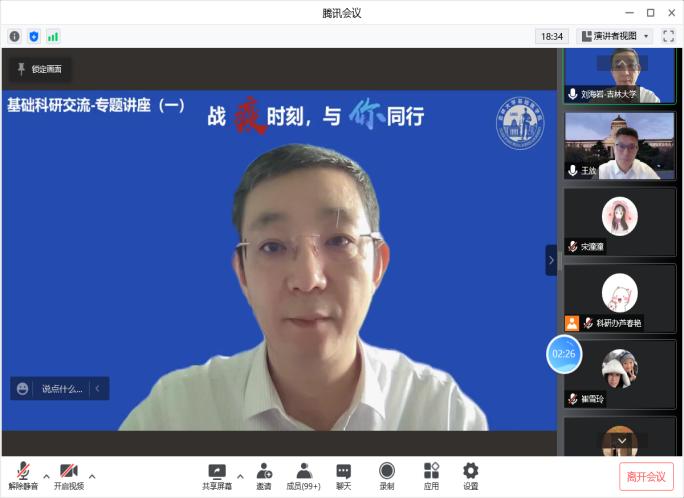 为了让全体师生在新冠疫情居家办公期间对新冠病毒有更为全面的了解,强化师生的防护意识和防护规范,2022年4月5日,威廉体育williamhill组织开展了主题为战“疫”时刻,与你同行的专题讲座,包括威廉体育williamhill、吉大一院、吉大二院、药公司等在内的全校师生近300人线上参加讲座。