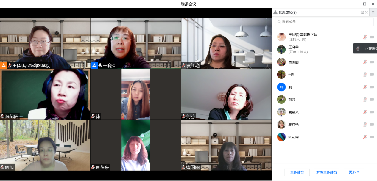 基础医公司党委副书记曹国丽通报了校园封闭管理期间员工管理的情况,同时就党支部具体专项工作提出了一些要求。党办主任夏燕来强调了近期对党支部基础性工作的要求。随后,各党支部书记就疫情防控期间支部主要做法及成效一一作了详细的汇报,大家纷纷表态将进一步做好在提级管控期间的组织建设、正面宣传和舆论引导,继续科学有效地做好各项疫情防控工作。