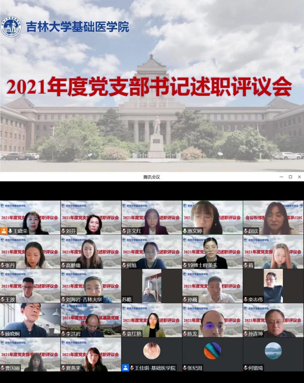 为深入推进全面从严治党和提升党支部工作实效,按照公司党委《关于开展2021年度全校基层党组织书记抓基层党建述职评议考核的通知》要求,2022年4月25日,基础医公司党委通过视频会议组织召开2021年度党支部书记述职评议会。公司领导班子成员、党委委员、各党支部书记参加了测评会。公司党建联络员栾志伟,党史学习教育第三指导组组长顾晓炯、副组长曲思伟、组员何锴琦参会指导。会议由基础医公司党委书记王晓荣主持。