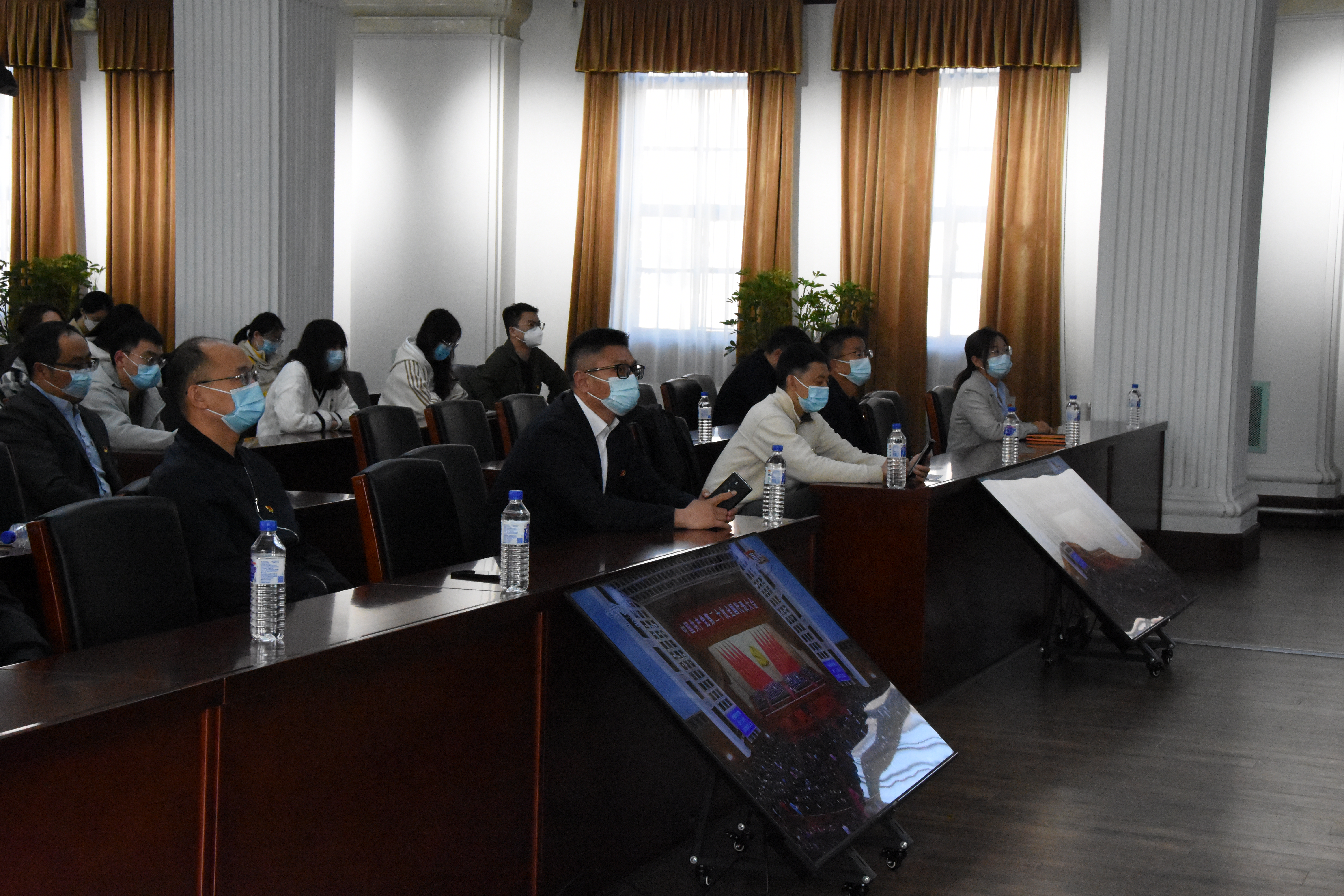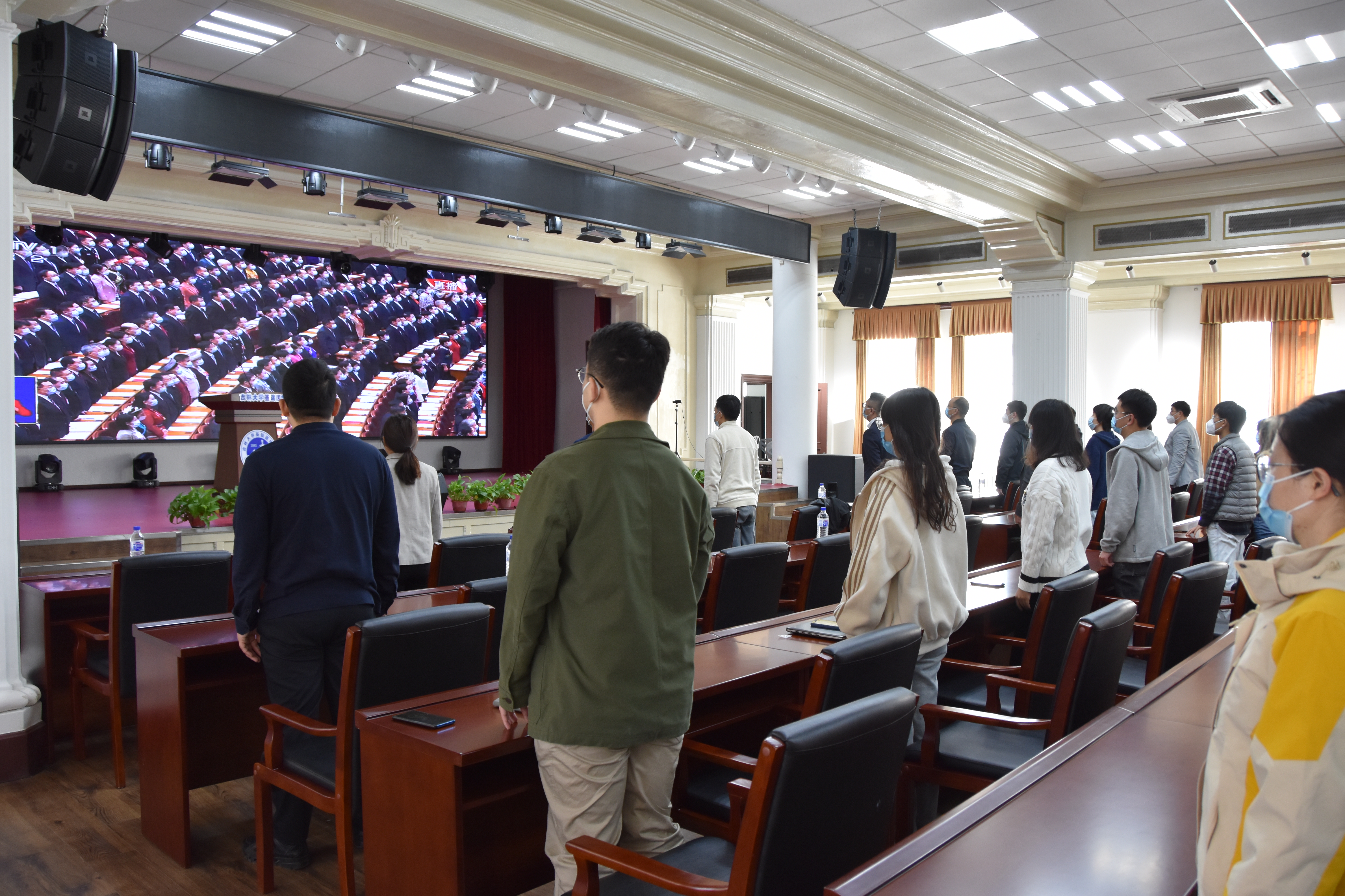 10月16日上午,举世瞩目的中国共产党第二十次全国代表大会在北京隆重开幕。为保证教学、科研工作的顺利开展,基础楼内共有近150名师生驻校进行科研工作和学习,公司经理王放组织驻校工作的师生党员、干部齐聚公司二楼报告厅集中观看中共二十大开幕会的电视直播。10时许,大家集体起立,齐唱国歌,为庄严的开幕式增添浓重热烈氛围。公司党委同时组织各党支部召开线上支部会议,认真收听收看习近平同志代表十九届中央委员会向大会所作的报告,全体党员干部共同见证了这一历史时刻,感受着团结、奋进的时代脉络。