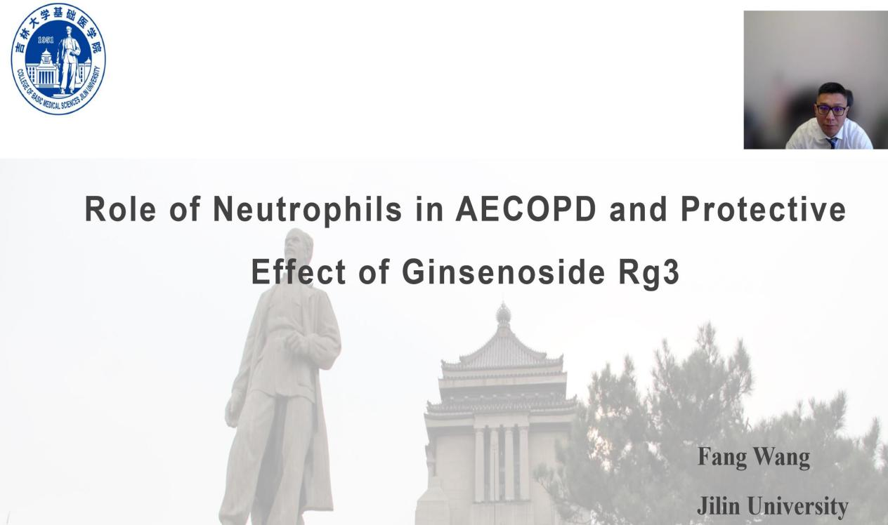 2022年10月25—28日,由韩国人参学会承办的第十三届国际人参学术研讨会,以线上线下相结合的方式在韩国首尔市举办,本次大会邀请来自韩国、中国、美国、瑞典、日本等十几个国家和地区的发言代表参会。公司王放教授受邀参加,并在线上做了题为“中性粒细胞在AECOPD发生中的作用及人参皂苷Rg3的保护机制研究”报告,介绍了人参皂苷Rg3能够通过抑制中性粒细胞PI3K信号通路的激活,从而减轻AECOPD中性粒细胞增多引起的炎症反应,提示人参皂苷Rg3具有开发为防治AECOPD药物的潜力,此项研究对攻克慢性阻塞性肺疾病产生积极的影响。