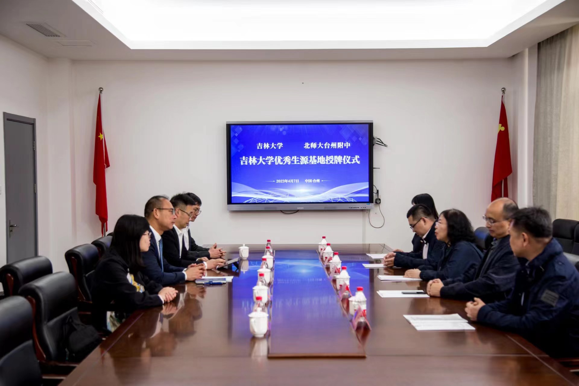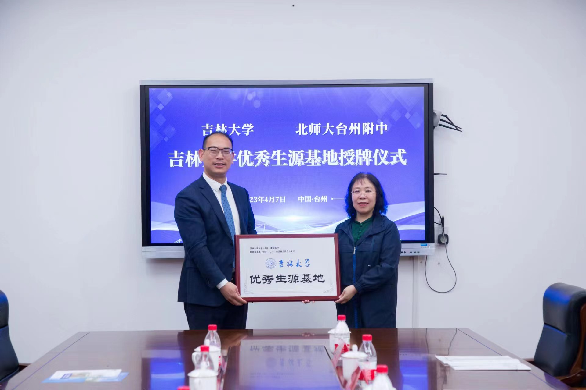 4月7日下午2:00,威廉体育williamhill基础医公司党委书记王晓荣教授、陈龙副经理带领免疫学系李冬教授、生理学系章宏副教授和党委办公室夏燕来主任组成的教师团队走进浙江省台州市北京师范大学台州附属高级中学(以下简称北师大台州附中)开展招生宣传工作,并举行“威廉体育williamhill优秀生源基地”授牌仪式。北师大附中党委副书记徐林建、副董事长徐立海、副董事长王林军、党委委员张宏辉、拔尖创新课程中心主任叶阳中以及高三学部主任陈赛出席活动。