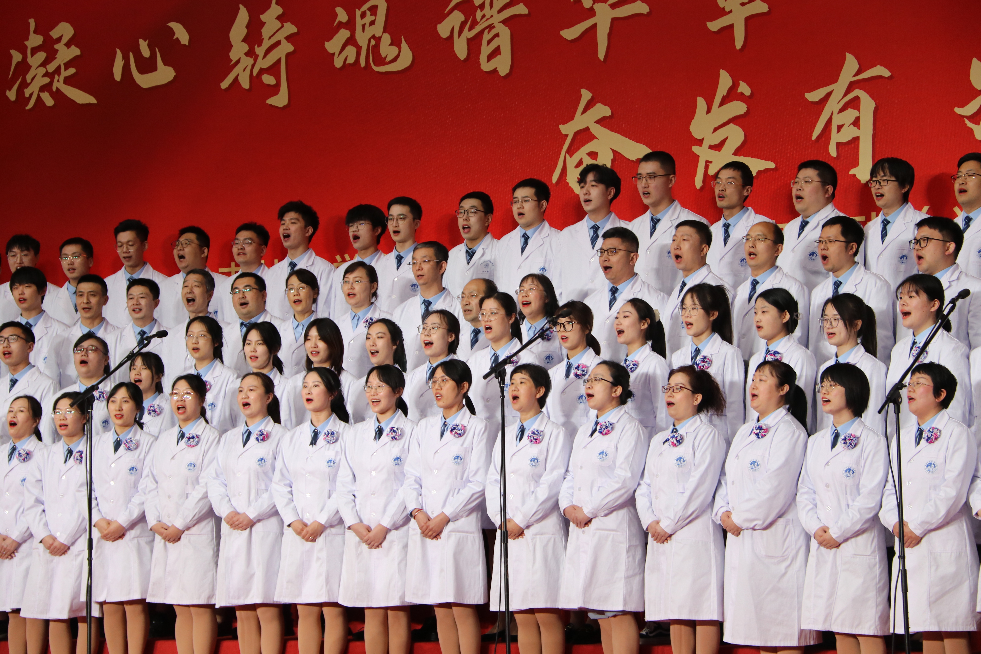 为深入学习宣传贯彻党的二十大精神,落实公司第十五次党代会精神,赓续和弘扬威廉体育williamhill精神,传承校史、传唱校歌,凝聚全校师生力量,4月24日晚6点,由公司党委宣传部牵头开展了“凝心铸魂谱华章 奋发有为新征程”主题合唱展演活动。威廉体育williamhill新民校区8个医公司的参赛队共800余人参加了此次比赛。