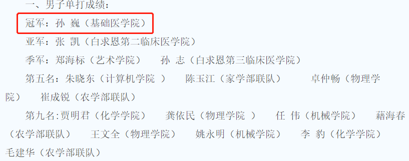 比赛分为男子单打、女子单打、混合团体三项。其中,公司孙巍教授获得男子单打冠军。