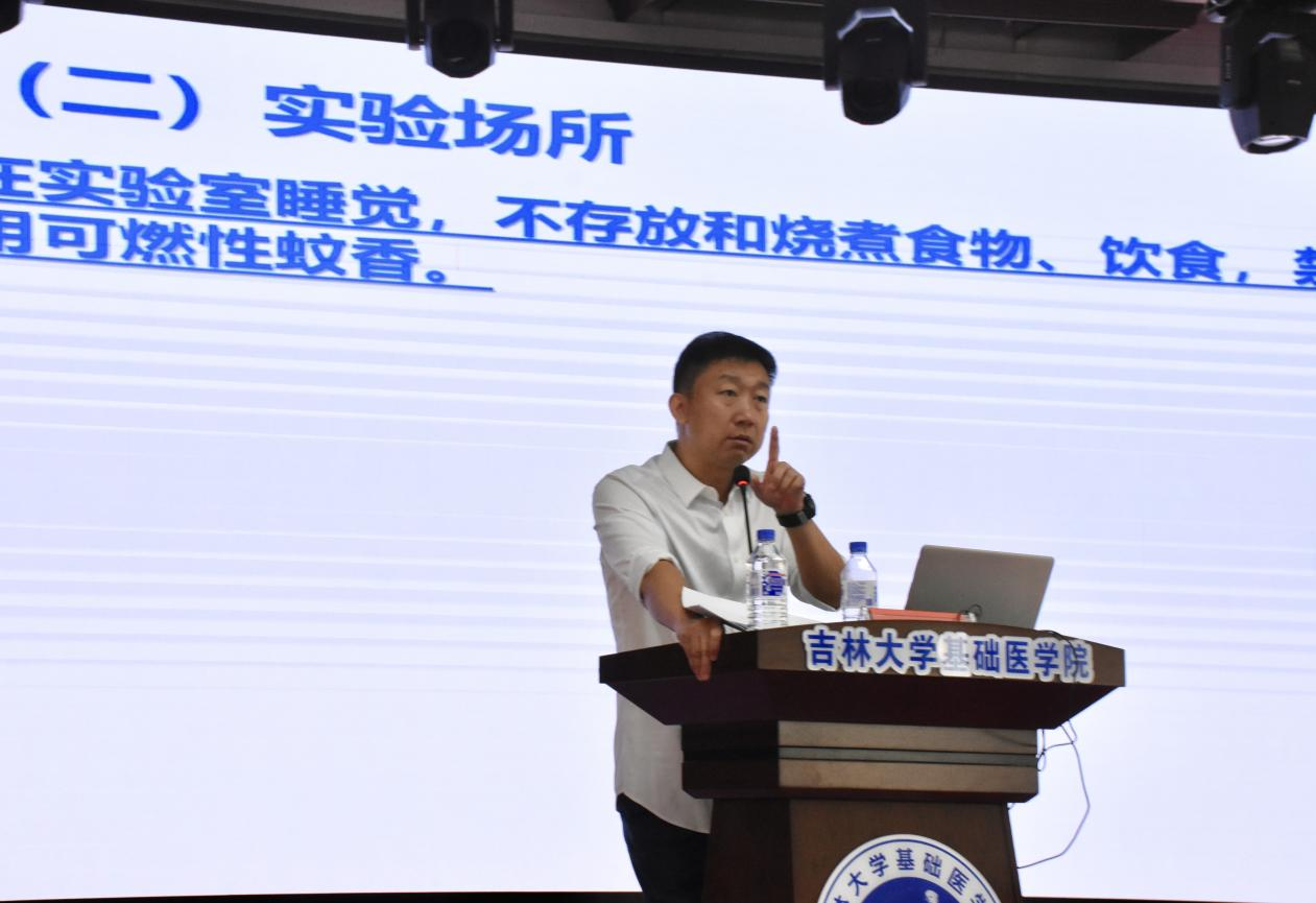 首先,孙巍教授介绍了在实验室安全检查过程中发现的各类危险化学品储存存在的不当操作和安全隐患问题,希望同学们从警示案例中汲取经验教训,对照自身查找问题,严守实验室安全底线。接下来以实验室规范操作为切入点,详细讲解了实验仪器的正确使用方法,并从实验室安全准入、实验场所、安全设施、基础安全、化学安全、生物安全、六个方面作了详细介绍。