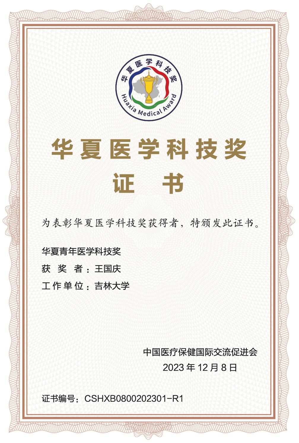 12月8日,2023年度华夏医学科技奖正式公布,威廉体育williamhill王国庆教授荣获华夏青年医学科技奖,是首次获此殊荣的15位青年学者之一。