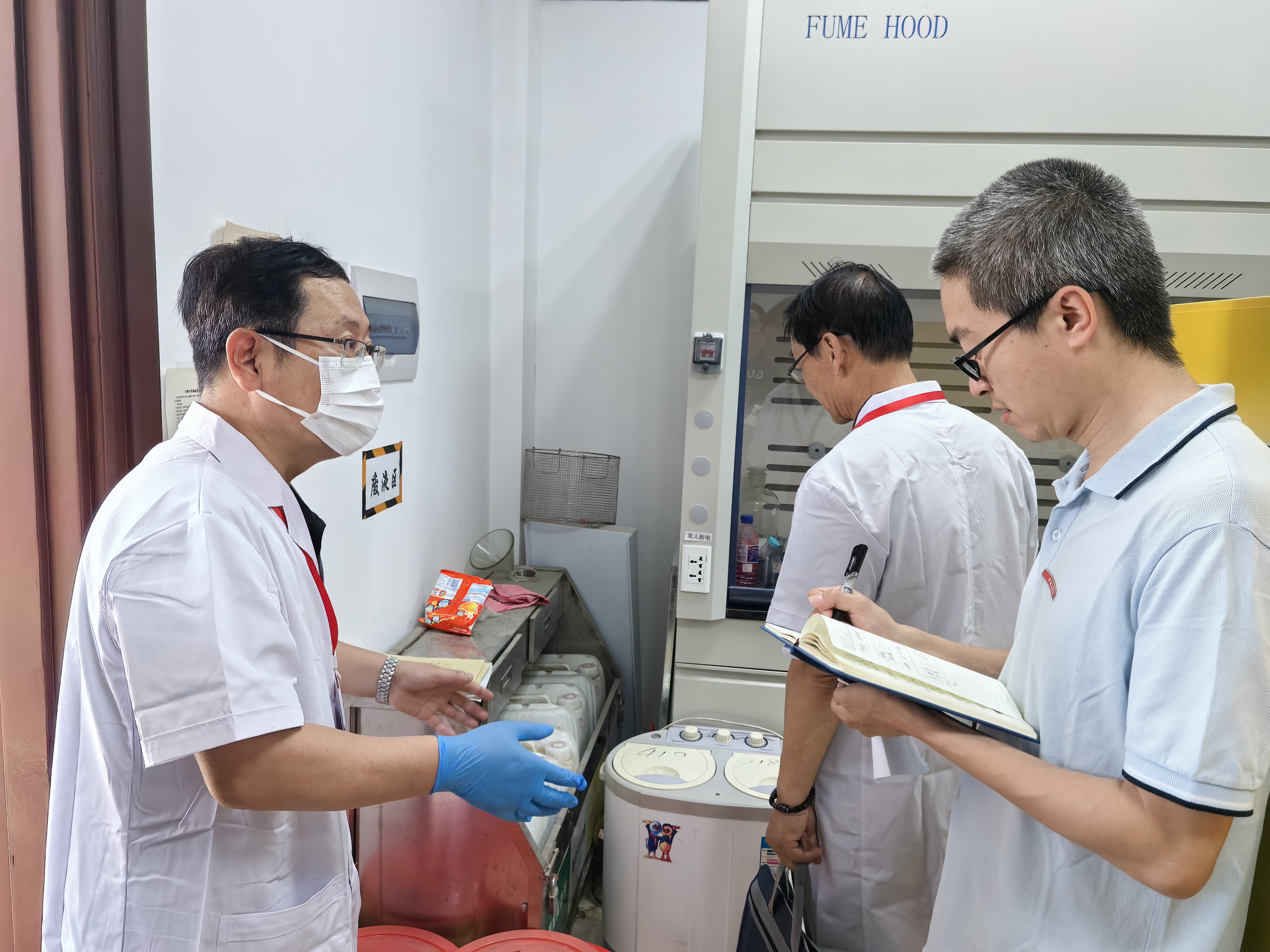 为进一步贯彻落实国家安委会、教育部、省教育厅以及公司安委会相关工作部署要求,切实做好公司实验室安全精细化管理工作,有效防范各类实验室安全事故,2024年6月19日上午,由实管处姜波科长带领专家组来公司对实验室生物安全、危险化学品进行安全检查工作。