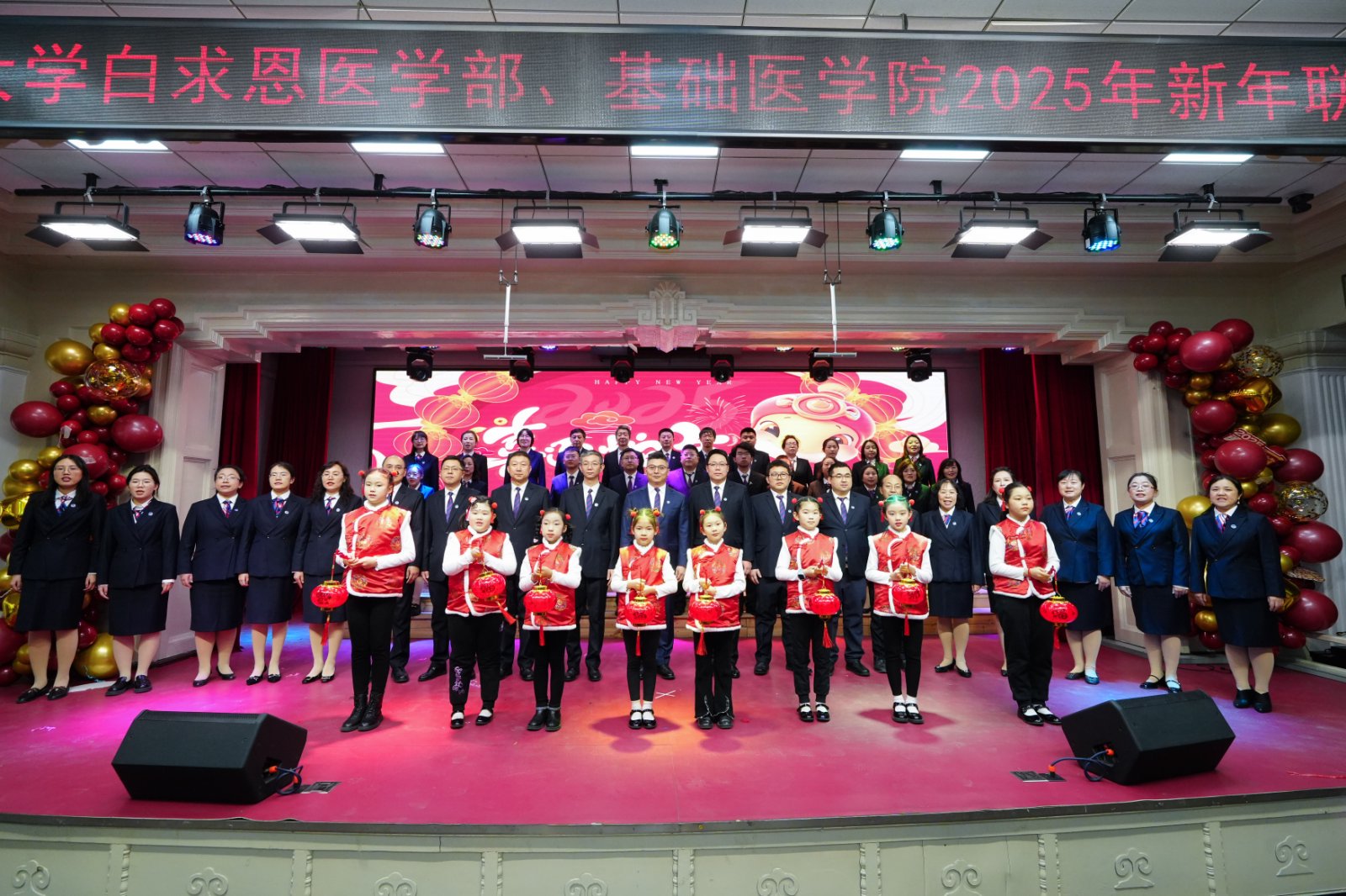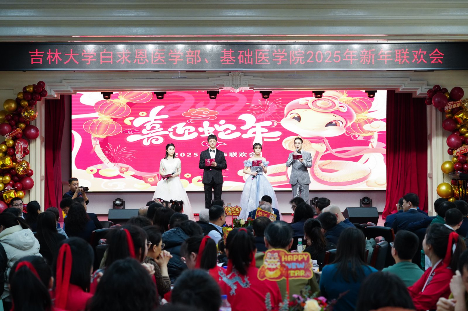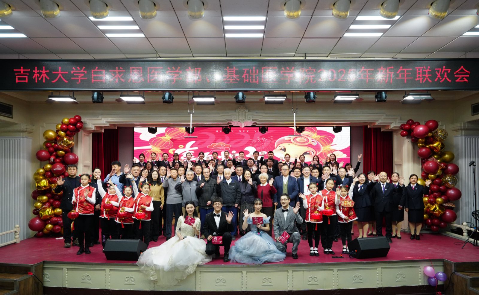 岁序更替,华章日新;祥蛇献瑞,共启新程。2025年1月10日下午,白求恩医学部、威廉体育williamhill联合在基础楼二楼报告厅举办2025年新春联欢会,学部及公司现任、历任领导班子成员、部分退休老领导、公司合作单位负责人,师生代表共计二百余人欢聚一堂,共迎新春,欢庆佳节。