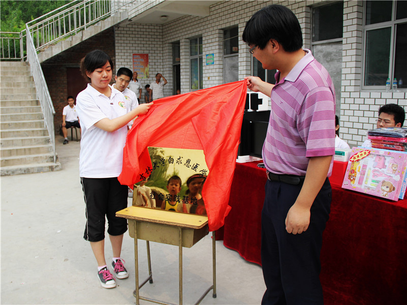 活动中,白求恩医公司与唐县团委举行了老员工社会实践基地揭牌仪式及捐赠仪式,将全院同学捐赠的电脑、文具、常用药品等捐赠给了白求恩希望小学,送上了对孩子们的祝福和希望。