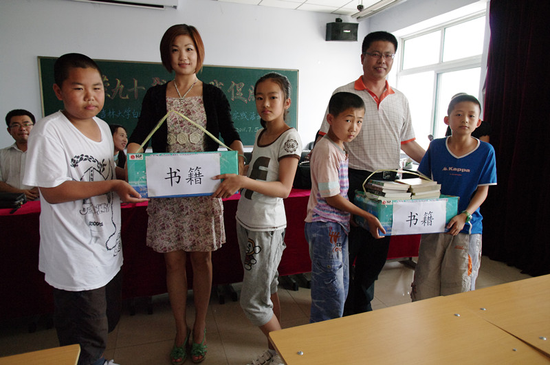 下午,小分队来到绿园区合心小学,开始了“大手牵小手”活动,小分队向公司捐赠了200册图书,并与小员工开展了互动活动。白求恩青年志愿者协会会长朱翠琳首先给孩子们讲述了白求恩的故事,随后白求恩医公司舞蹈团团长曲垠梦带领大家做游戏。在两个小时的活动中,同学们为孩子们普及了一些生活中的医学知识;通过“传话”游戏,帮助孩子们提高对英语的兴趣;通过“击鼓”“抽号”等方法让老员工与孩子们一起进行才艺表演,精彩的《大头儿子小头爸爸》、搞笑的《小燕子》等节目为本次活动画上了圆满的句号。