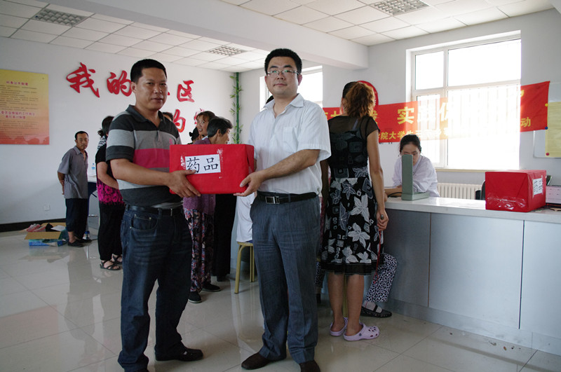 小分队首先来到了合心镇下属的新农家村。在村委员会,村党支部书记刘玉成代表新农家村接受了白求恩医公司捐赠的药品,并对小分队的到来表示感谢。之后,小分队的成员对村民进行了医疗服务,发放了药品,介绍了健康常识和用药知识,受到村民的欢迎。医疗服务结束后,小分队参观了新农家村的果蔬生产基地。
