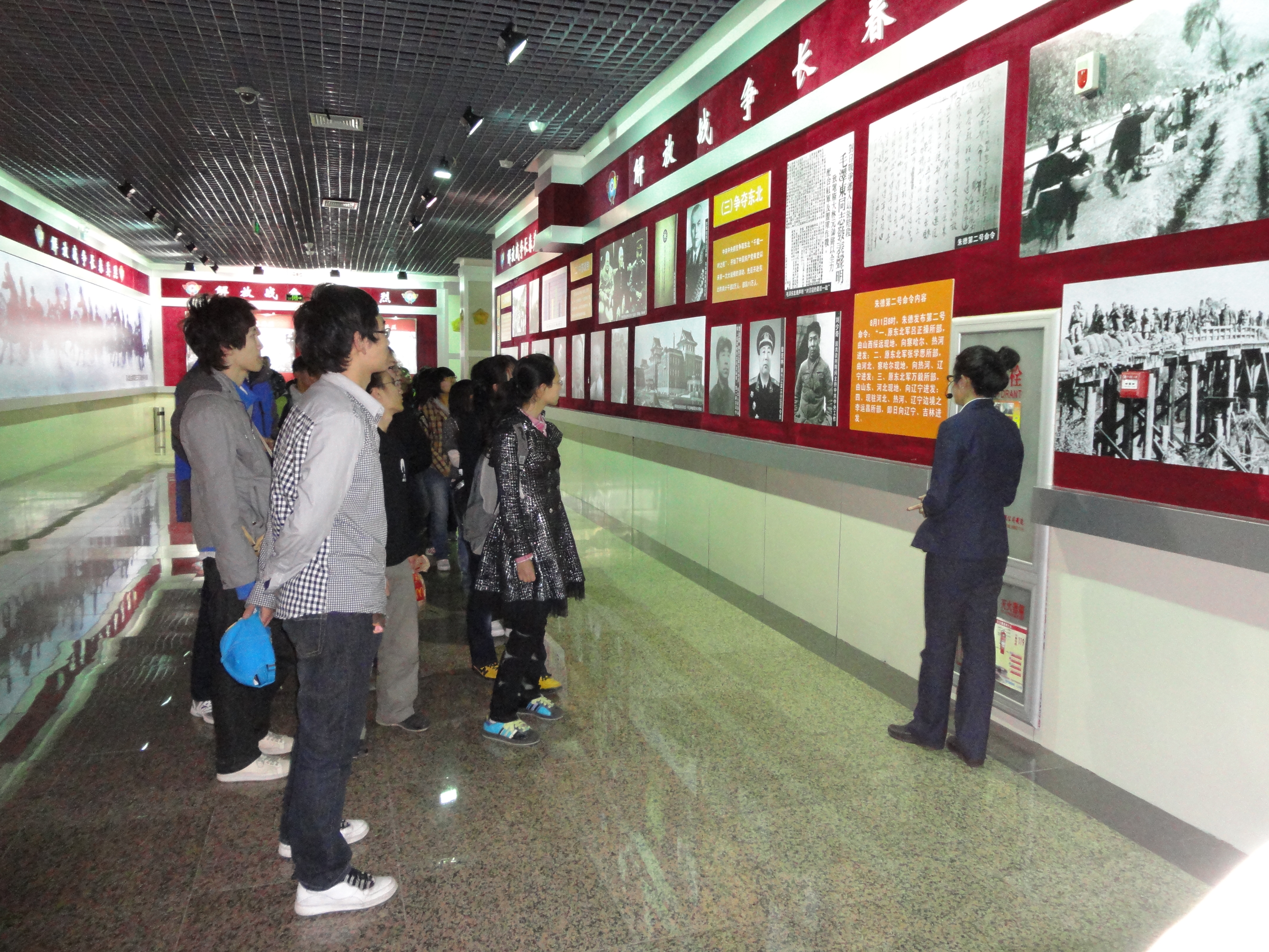 团支部全体成员于新民校区第二教学楼2206教室观看了影片《建国大业》,回顾了祖国建国的历程,体会新中国的来之不易。次日,全体同学兵分三路,模拟长征“会师”,分别乘公交、轻轨和骑自行车于九龙源烈士陵园汇合,并于下午参观了九龙源烈士纪念馆,了解了长春解放历程,缅怀了在解放战争与抗美援朝战争中英勇牺牲的革命烈士。(员工记者 沙欣)