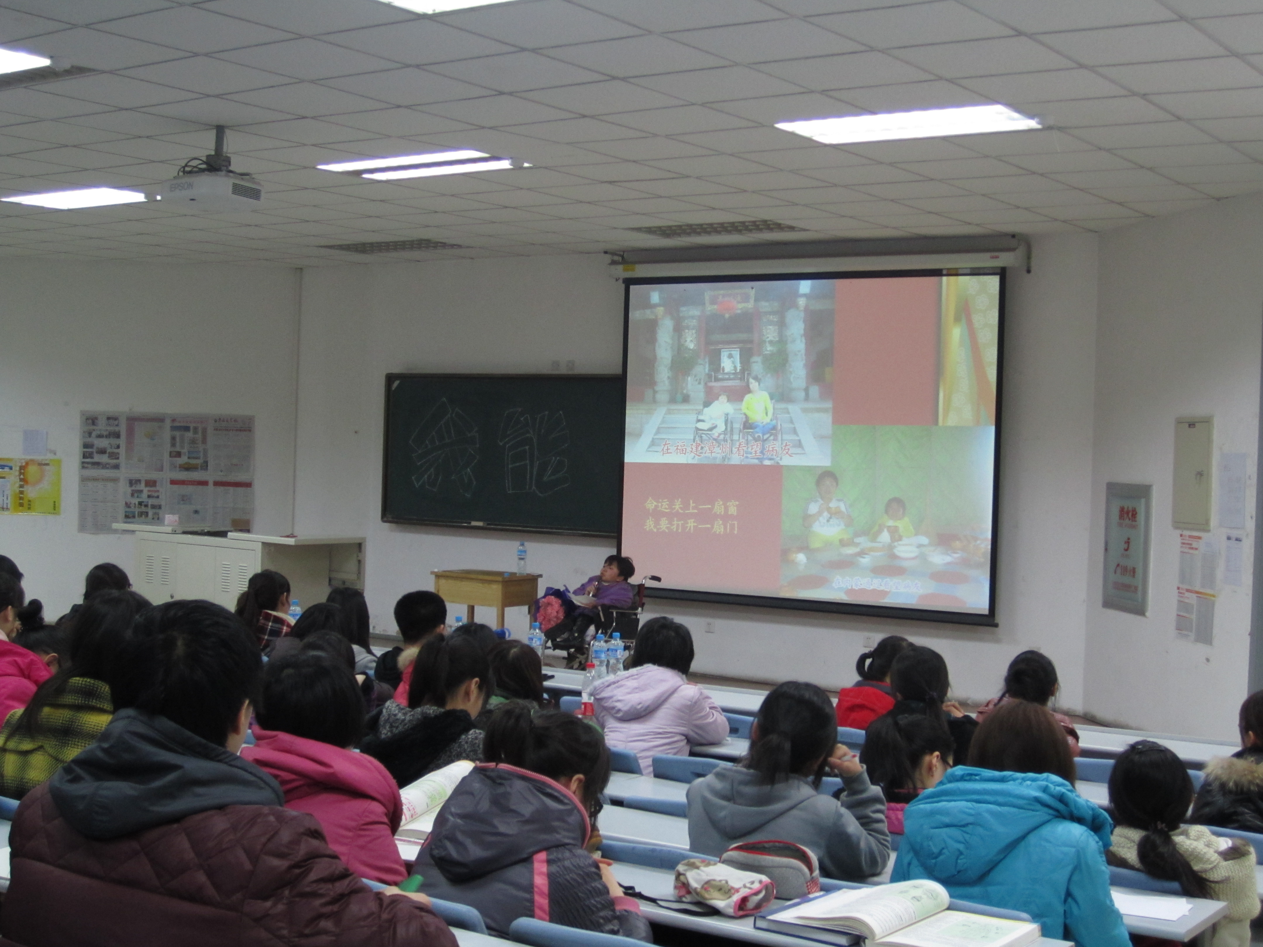 了解到于海波女士的经历后,现场同学们被她自强自立、服务社会的精神深深感动,在那样一个弱不禁风的身体里,竟然能够蕴藏如此强大的生命的力量。在稍后的互动环节中,同学们通过传纸条的方式与于海波女士交流,懂得了应珍惜眼前的生活,真正的认识到了生命的价值。