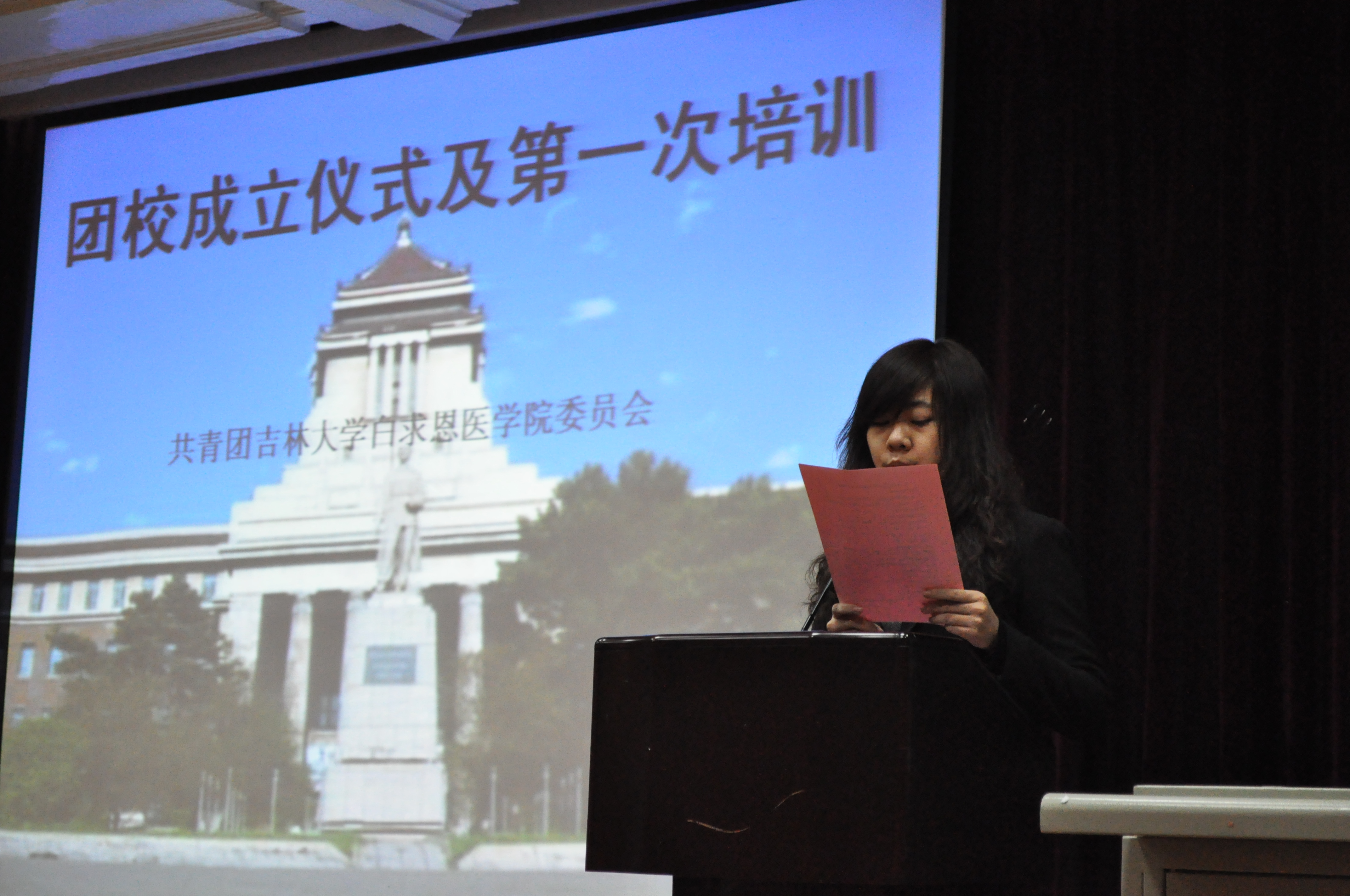 仪式在雄壮的共青团团歌中拉开了序幕,公司团委副书记李梓萌宣布白求恩医公司团校成立,并公布了团校的组织机构。白求恩医公司团校董事长由公司团委书记夏燕来担任,聘请校团委书记周春国、白求恩医公司党委书记屈英和为顾问,聘任苑锐等20人为讲师。仪式上对聘任的讲师颁发了聘书。