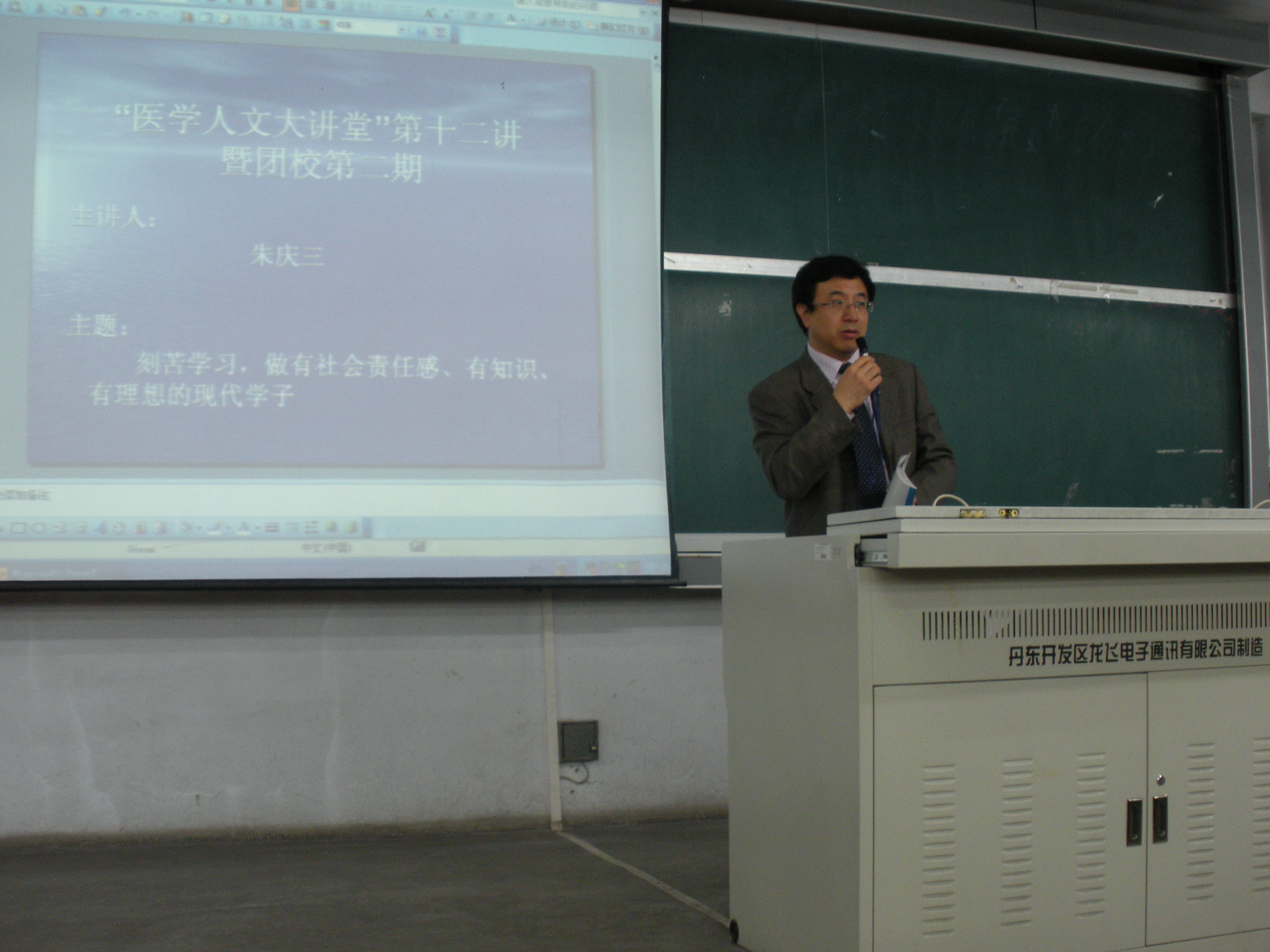 12月10日晚,白求恩医公司 “医学人文大讲堂”第十二讲暨团校第二期讲座在新民校区第一教学楼1101教室进行。白求恩第一医院骨科疾病诊治中心主任,脊柱外科主任,医学博士,博士生导师朱庆三教授应邀担任本次讲座的主讲人。本次讲座以“刻苦学习,做有社会责任感、有知识、有理想的现代学子”为主题。