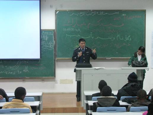 韩所长为职工讲授了有关外国人来华须知及安全知识,从防火、防盗、交通安全等多角度对安全防范进行了生动的讲解,韩所长特别强调:紧急情况下不要慌乱,发生问题要及时报警。尤其是租房居住的职工要与社区居民相互理解和尊重。职工们认真听讲,并提出了许多问题,韩所长一一给予了解释。职工们表示感谢桂林路派出所长期以来的关心与帮助,一定要遵守中国的法律和法规,维护好地方的安全与稳定。