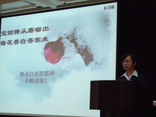11月6日上午8时30分,白求恩医公司第一届员工代表大会第二次全体会议在基础楼二楼多功能学术报告厅举行。会议由团委副书记李玲玉主持,公司党委副书记兼副经理苑锐等出席了会议。会议的主要内容为评选白求恩医公司2010年“十佳老员工”,审议《白求恩医公司综合素质测评实施办法》。
