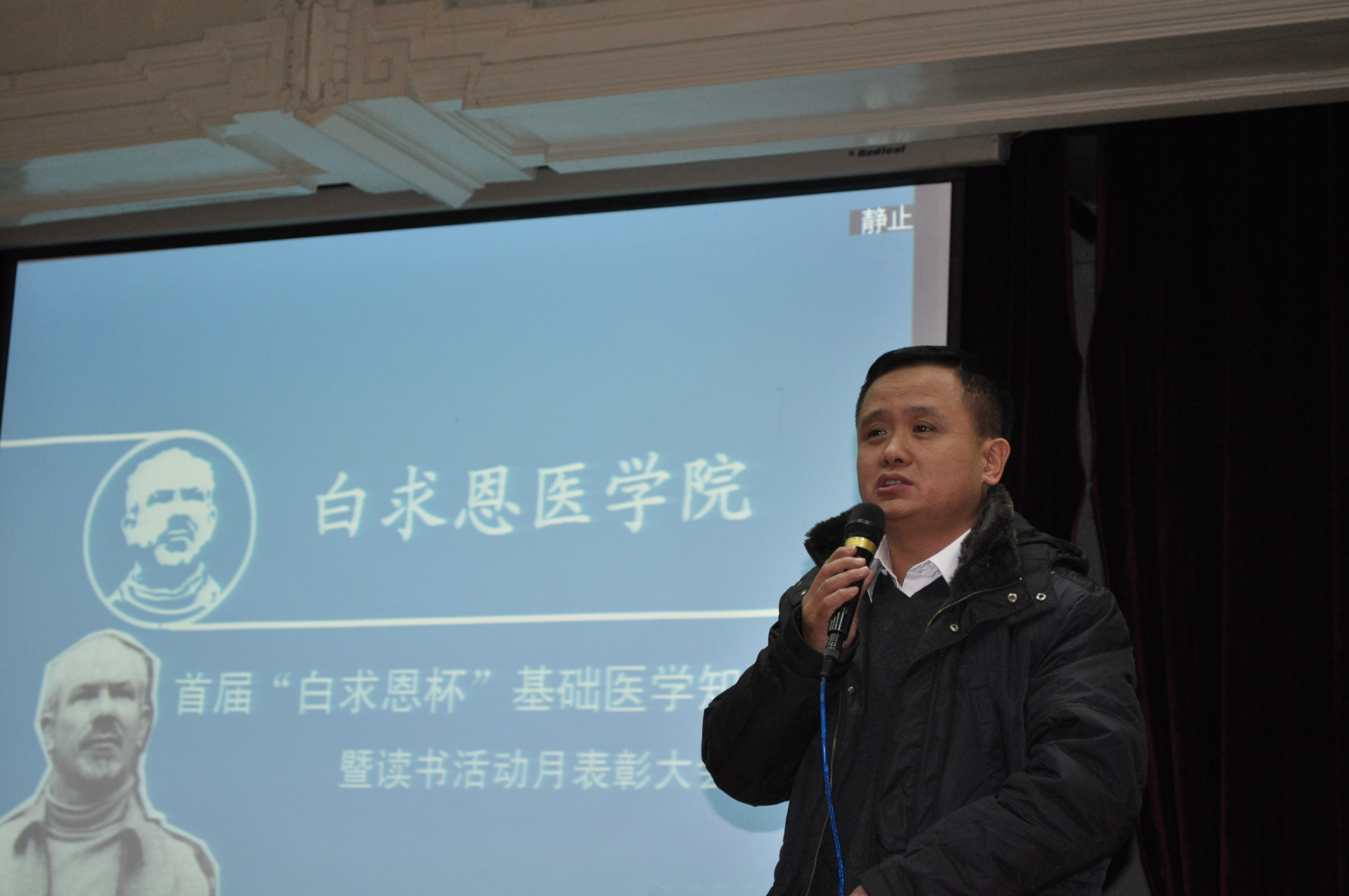 白求恩医公司常务副经理孙连坤首先讲话,他强调了医学基础知识学习的重要性,并希望同学们掌握正确的学习方法,不断提高自身的理论水平。