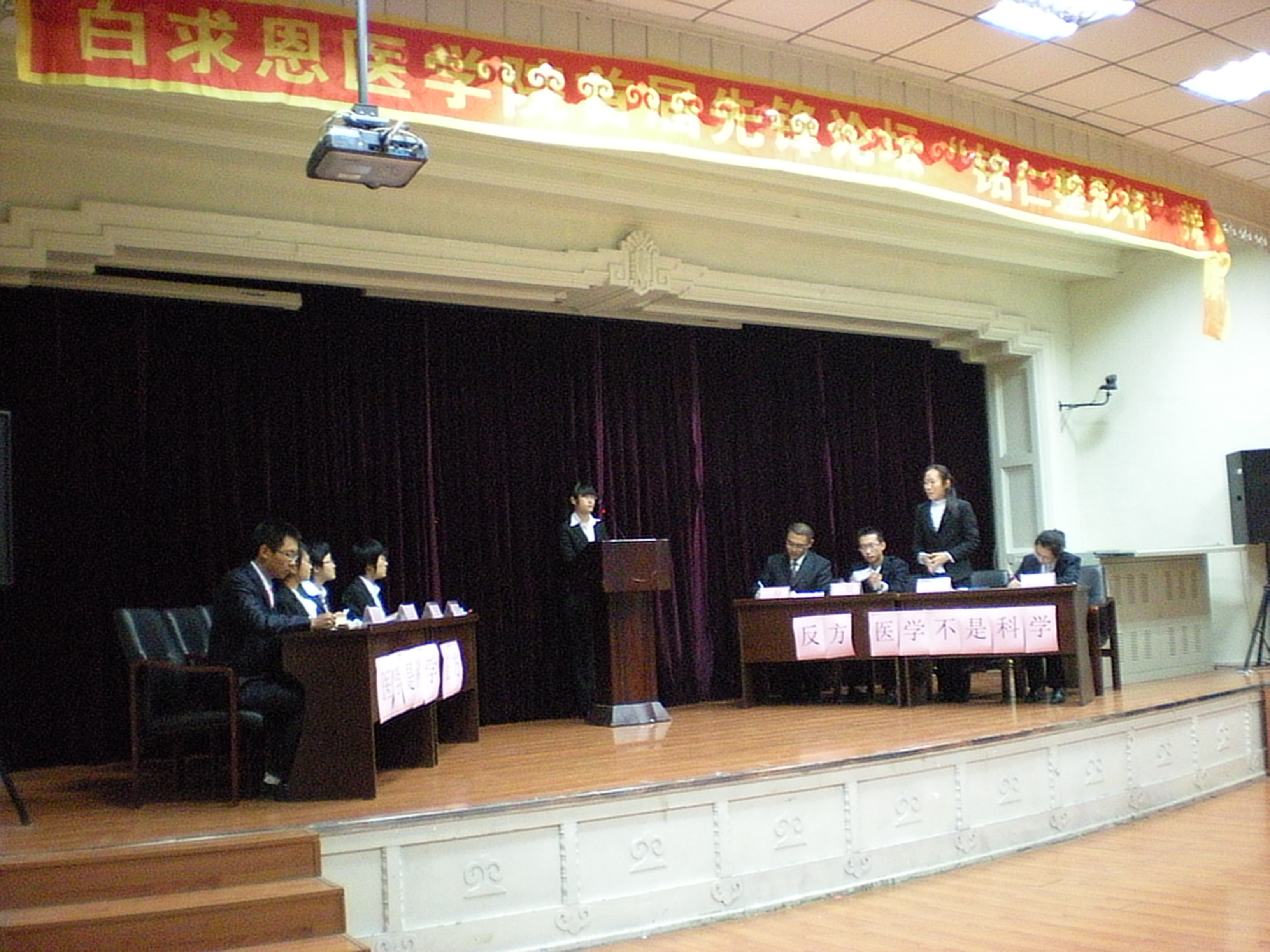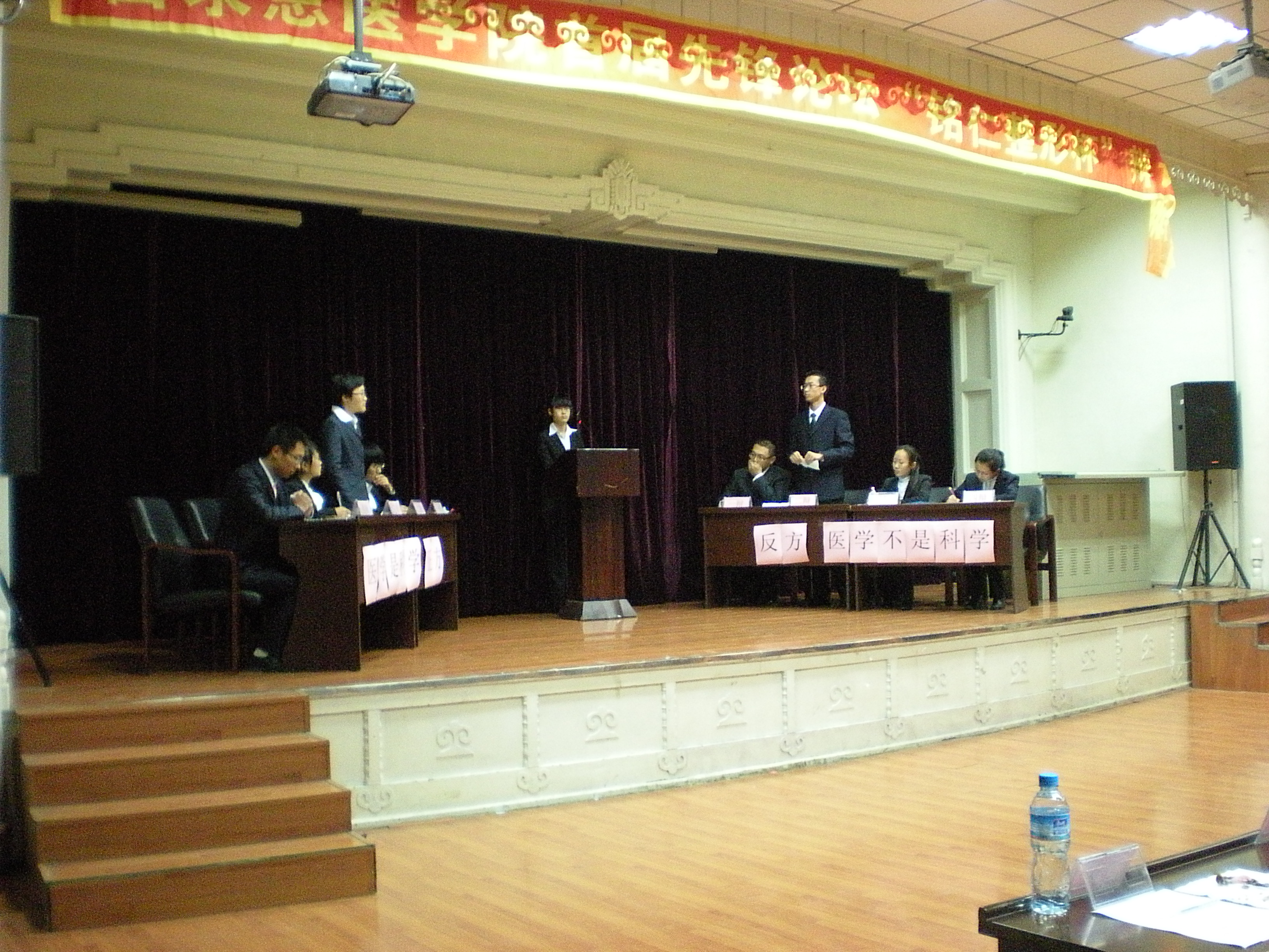 10月18日晚,白求恩医公司首届先锋论坛“铭仁整形杯”辩论赛在基础楼二楼多功能学术报告厅落下帷幕。2010级长学制团总支对五年制团总支就“医学是否是科学”进行了一场友谊赛。公司党委副书记兼副经理苑锐、团委书记夏燕来、辅导员秦雪以及长春铭仁整形医院孙云鹏主任出席了辩论赛。