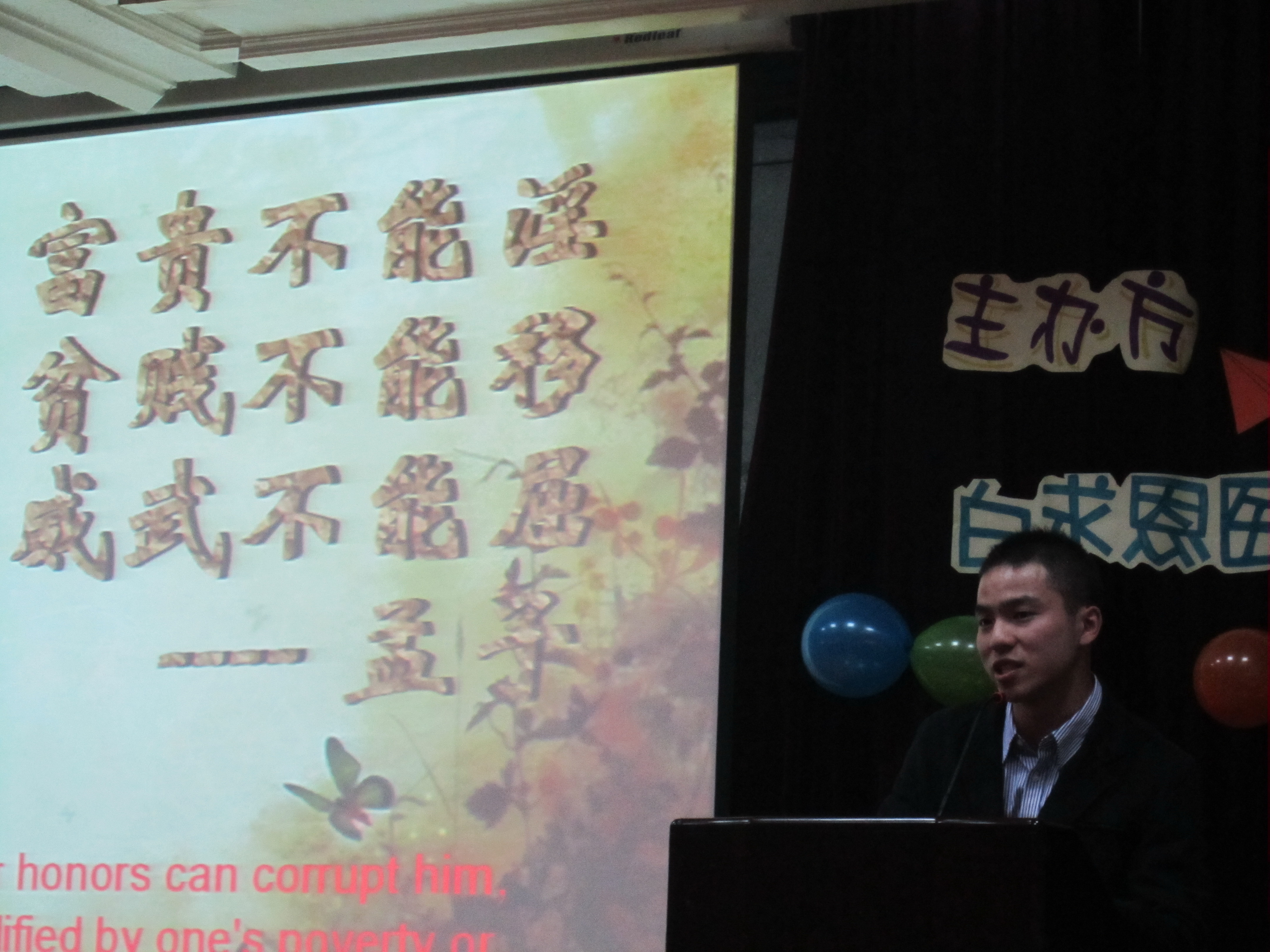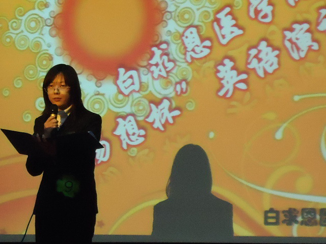 10月22日18时,白求恩医公司“畅想杯”英语演讲比赛决赛在基础楼二楼多功能学术报告厅举行。公共外语教育公司李朝教授、张晓平副教授、国际友人Fabian、白求恩医公司病理生理学系李洪岩副教授、生物化学教研室张纪周副教授担任了本次比赛的评委,公司党委副书记兼副经理苑锐出席比赛。