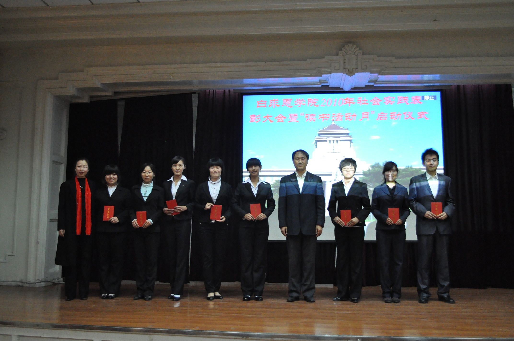 9月28日18时,白求恩医公司2010年社会实践表彰大会暨“读书活动月”启动仪式在基础楼二楼多功能学术报告厅召开。公司党委书记屈英和、副经理程丕显、党委副书记兼副经理苑锐、生物化学教研室副教授张纪周、员工工作办公室主任吴剑锋、团委书记夏燕来、辅导员秦雪及员工代表参加了会议。会议由员工会秘书长崔梦莹主持。