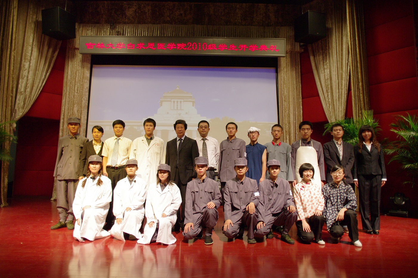 9月1日,白求恩医公司组织2010级全体同学观看话剧《白求恩》,原威廉体育williamhill常务副董事长、白求恩医公司经理李玉林,公司党委书记屈英和与同学们一同观看了话剧。
