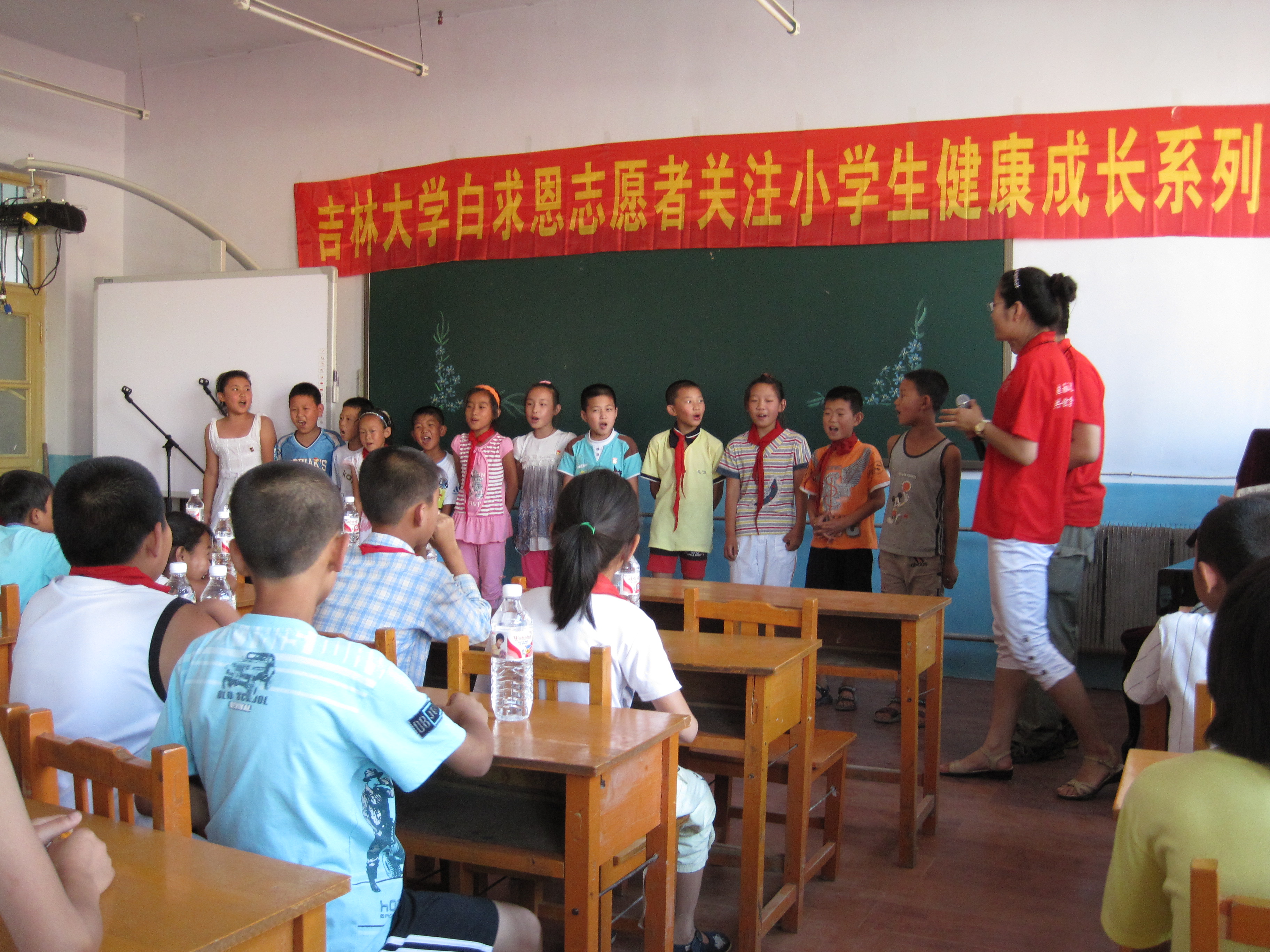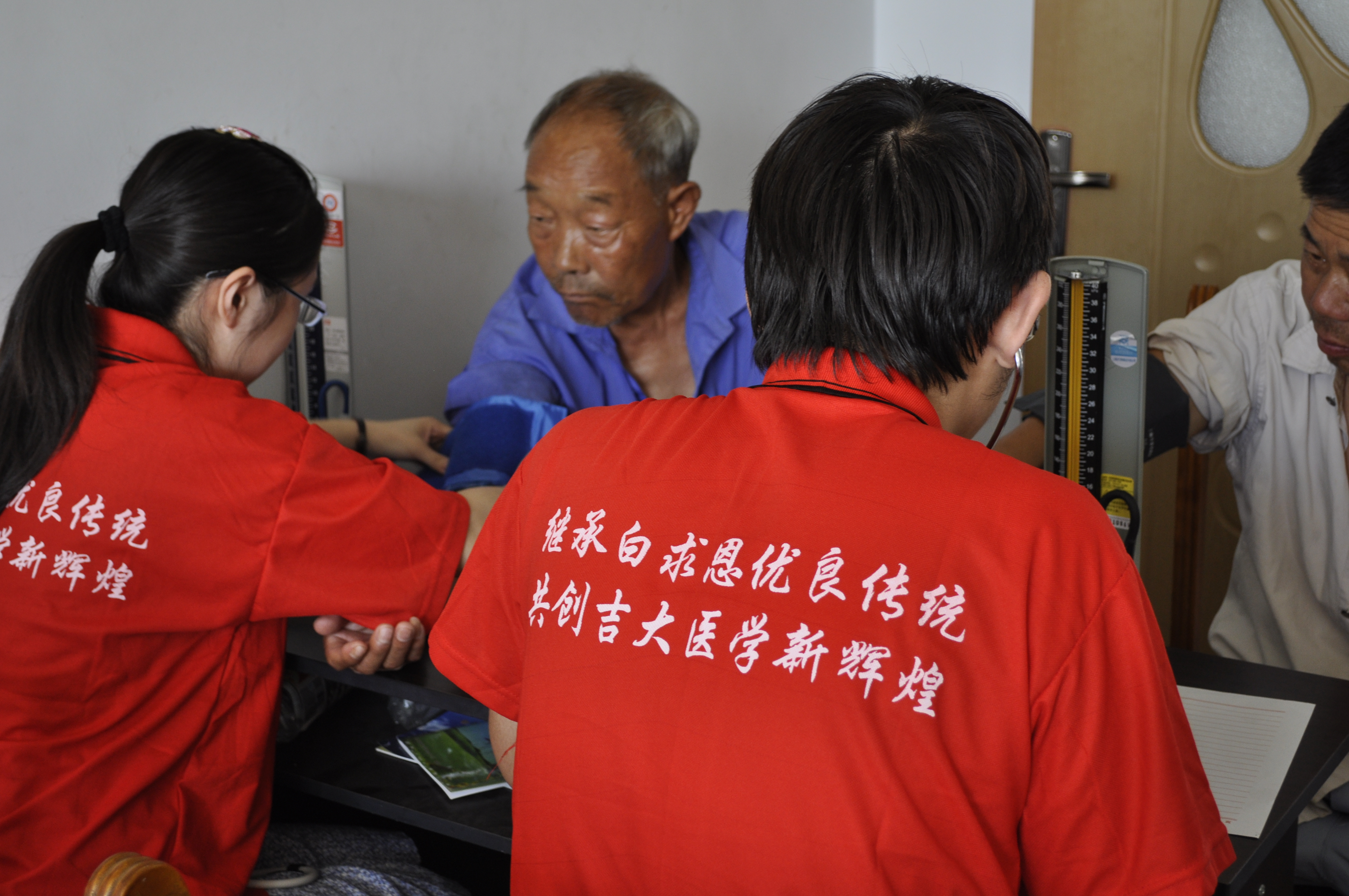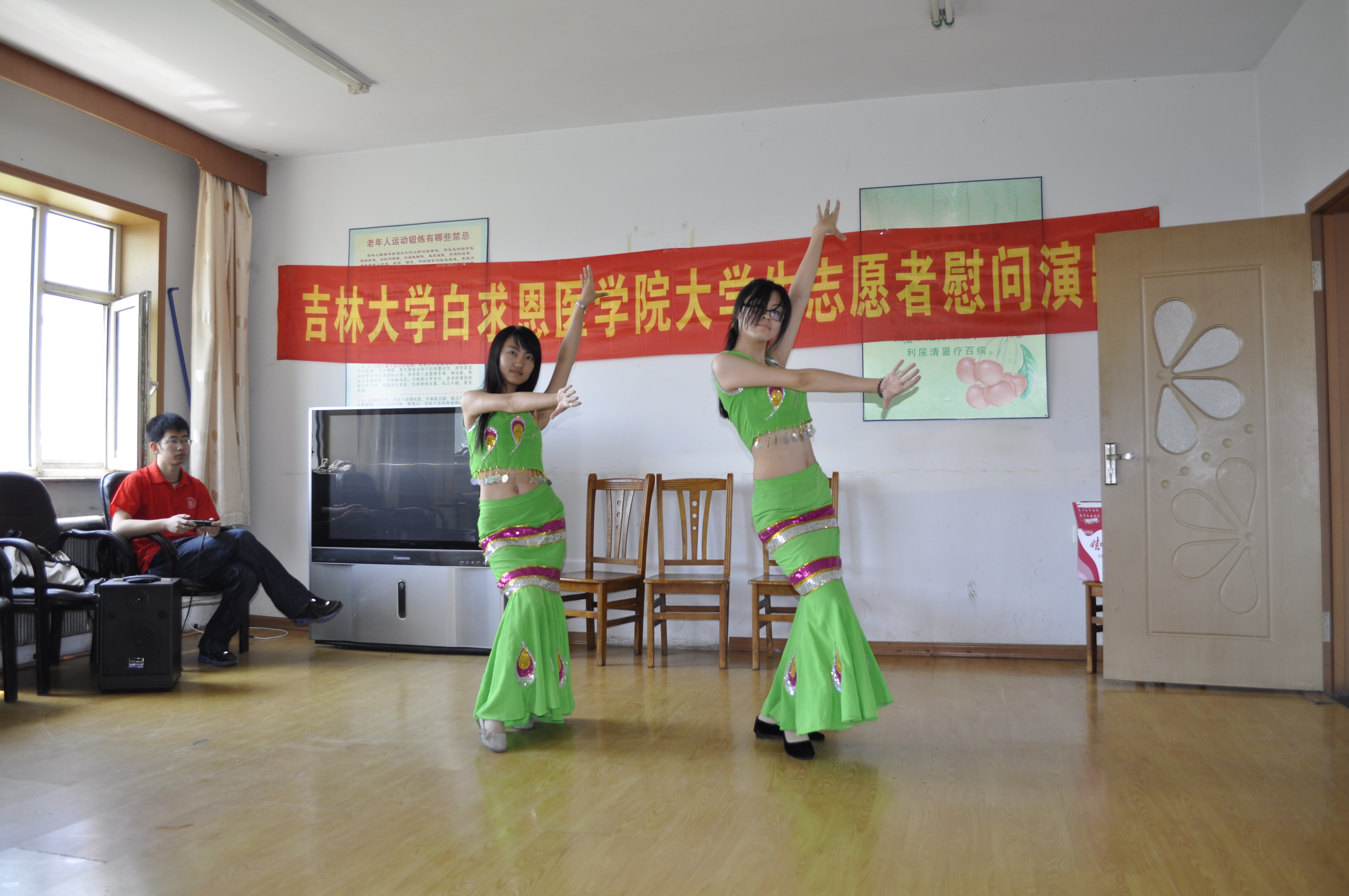 签约仪式后,白求恩医公司老员工志愿者分成两个小分队分别在乐山镇社会福利服务中心和乐山镇中心小学进行了志愿服务工作。在乐山镇社会福利服务中心,老员工志愿者们为孤寡老人献上了一台精彩的文艺演出,刚柔并济的武术表演、深沉幽远的乐器独奏、悠扬柔美的粤语歌和傣族舞,博得了老人们的声声欢笑和阵阵掌声。同时,志愿者还为老人们提供了医疗服务与咨询,深受老人们的欢迎。在乐山镇中心小学,老员工志愿者们与小朋友一起做起了“命名游戏”。快乐的游戏让小朋友们懂得了梦想的重要价值,增强了他们的团队意识和集体荣誉感。