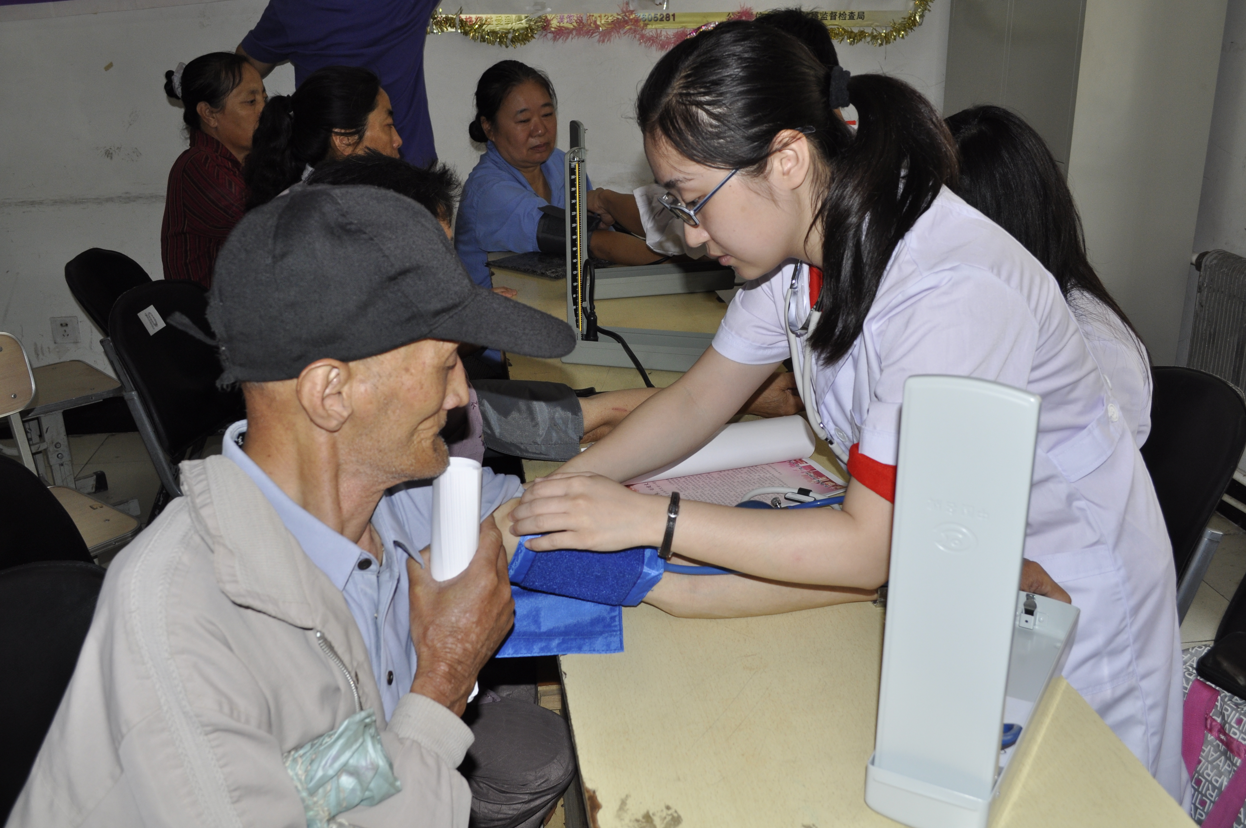 长春市普阳街道是白求恩医公司社会实践基地之一,当天公司医疗服务志愿者分成三个小分队分别在普阳街道下属的建阳社区、蓝天社区及升阳社区设立的医疗服务点为社区居民进行医疗服务与咨询。