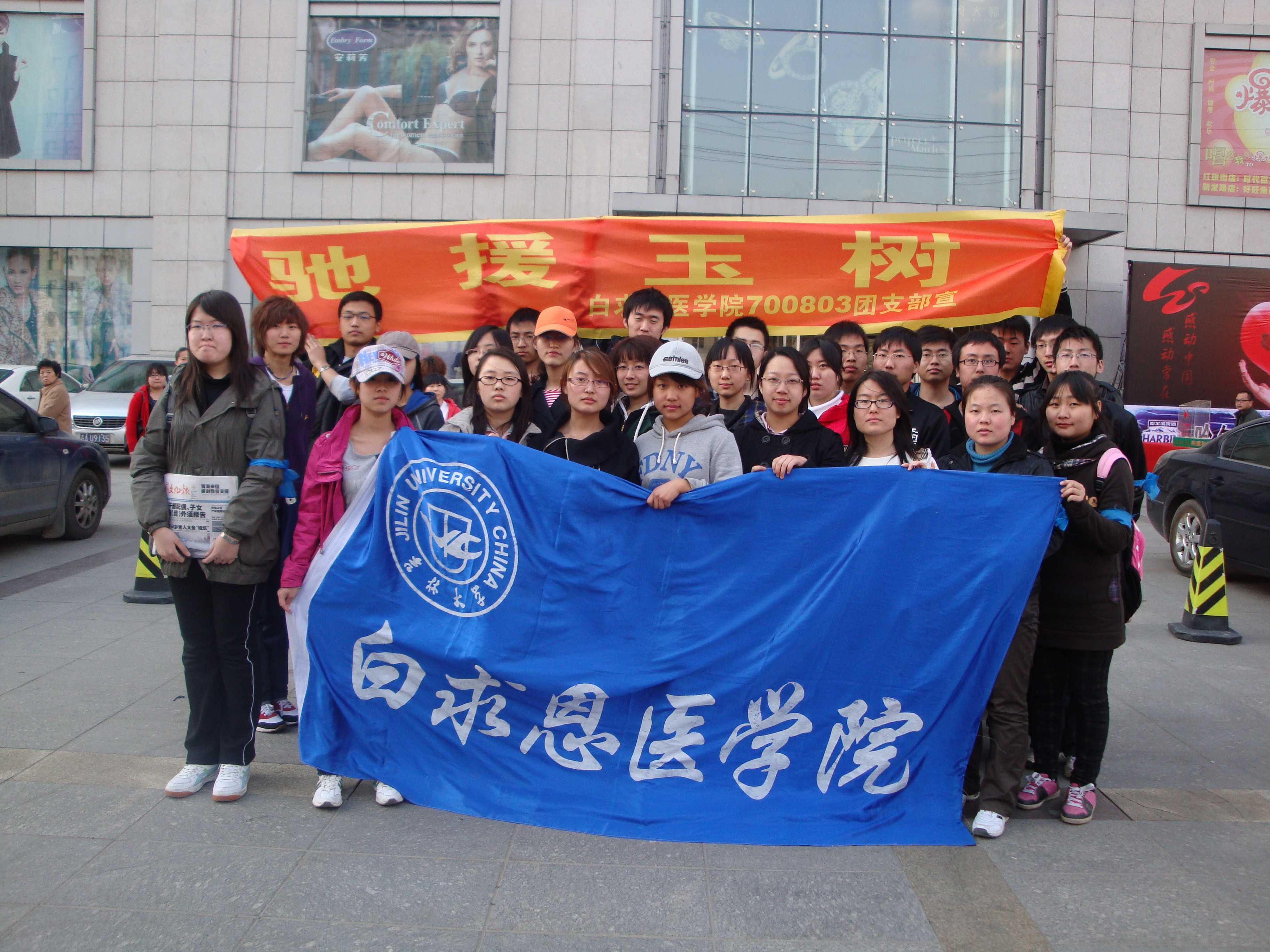 24日,白求恩医公司700803团支部组织了“云水遥”爱心义卖的第二次活动。本次义卖活动的主题是“守望西南,驰援玉树”。活动于中午12点30分开始,全班同学开始在红旗街分组进行义卖。同学们吃苦耐劳、无私奉献的精神打动了路过的市民,市民纷纷伸出援手,短短的四个小时,700803团支部共募集到善款1700余元,加上第一期活动所筹得的善款,两次共募集善款3900余元。