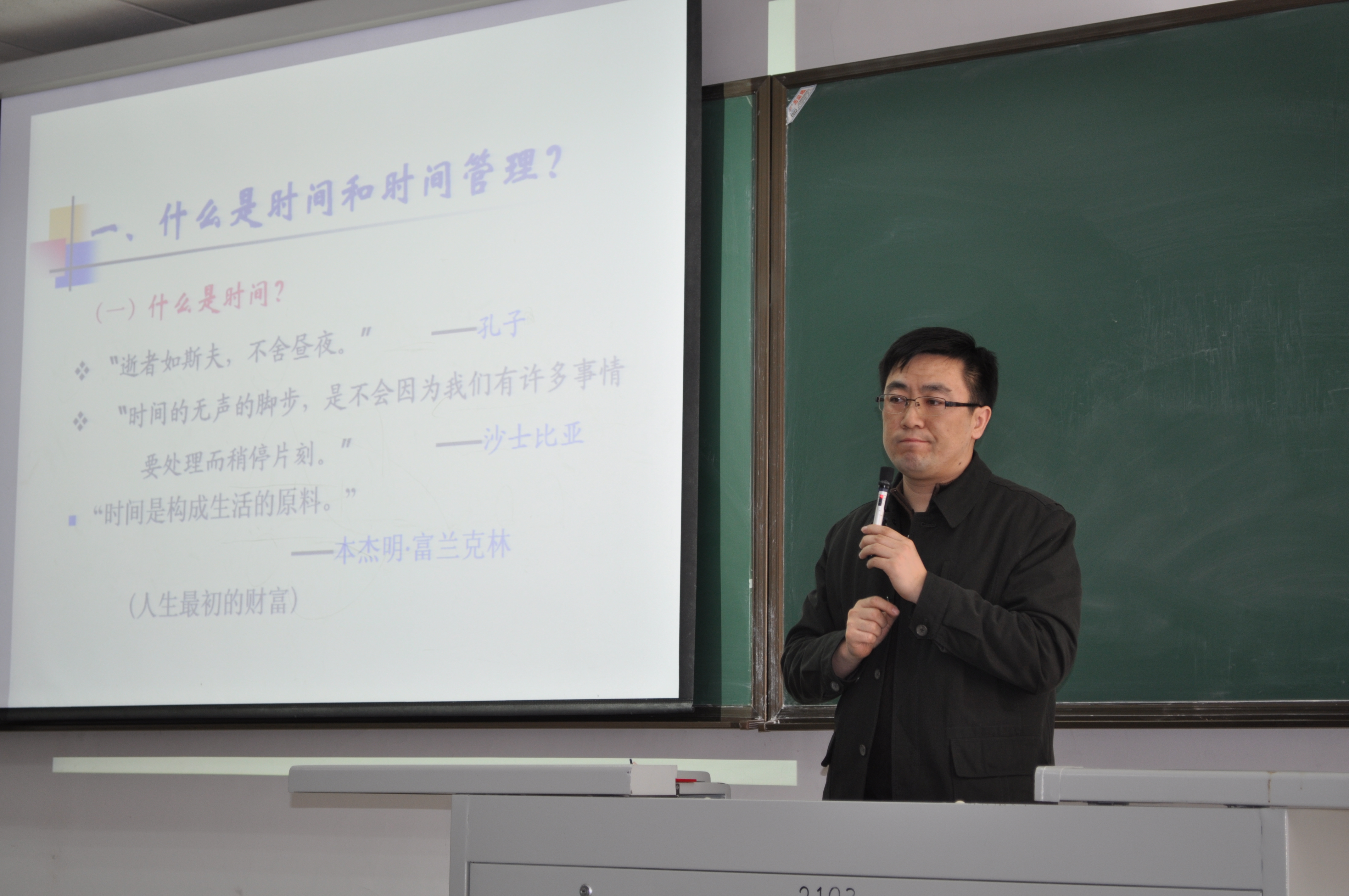 3月10日13时30分,在新学期的第一个工作日里,白求恩医公司在新民校区2103教室召开全体管理人员培训讲座。公司邀请到了威廉体育williamhill行政公司副经理、威廉体育williamhill政治学理论研究中心研究员、MPA教育中心主任、博士生导师麻宝斌教授为大家带来了题为《高效运筹时间提升生命价值》的精彩讲座。