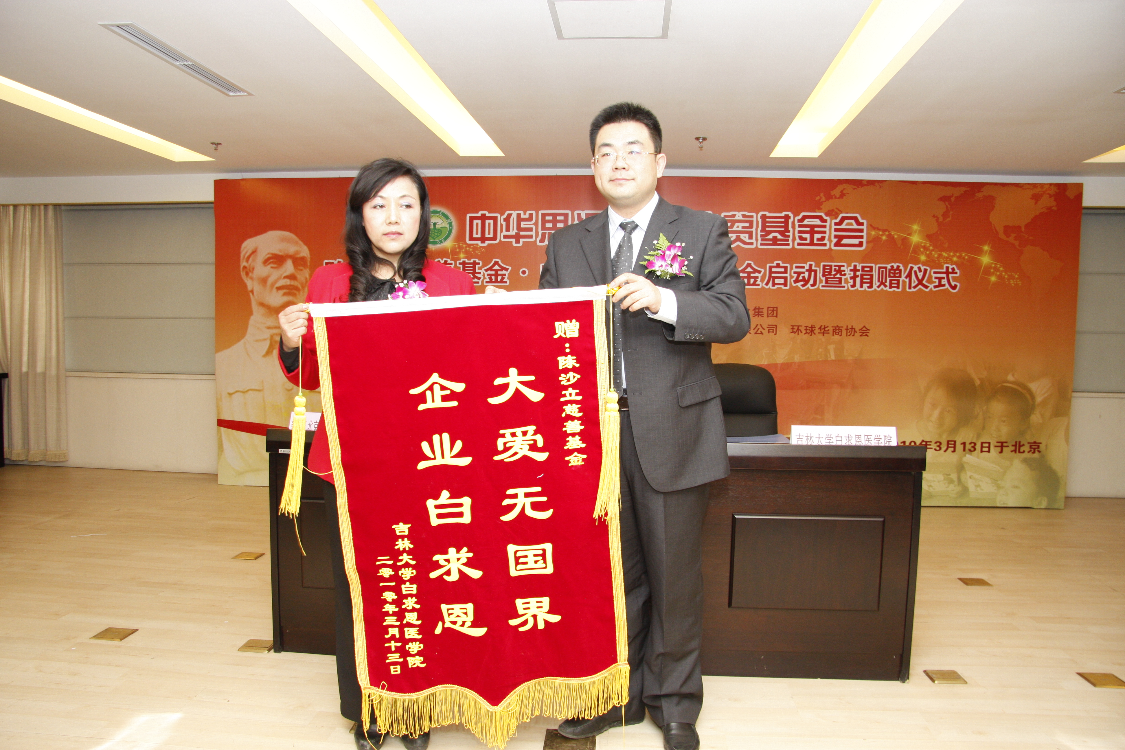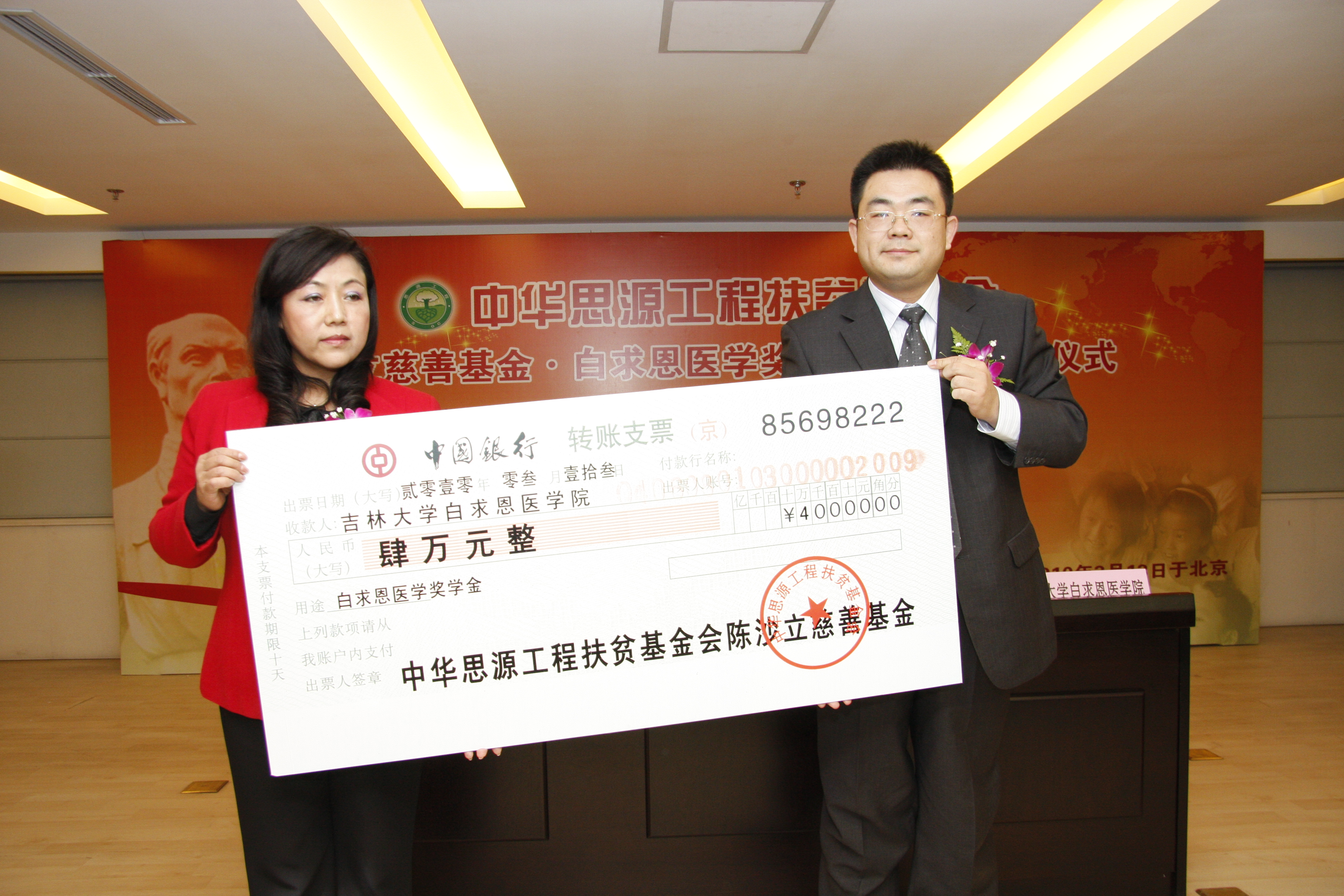 白求恩医公司党委副书记兼副经理苑锐参加了启动暨捐赠仪式,并代表受助方发言。他表示公司将不辜负社会各界对贫困学子的爱心,大力弘扬白求恩精神,积极培养优秀医务工作者,服务人民。会上,苑锐代表公司与中华思源工程扶贫基金会·陈沙立慈善基金签订了《“白求恩医学奖学金”项目捐赠协议书》。该奖学金将连续五年资助公司新生中的家境贫寒且品学兼优的员工,2010年的首期捐赠款为四万元。