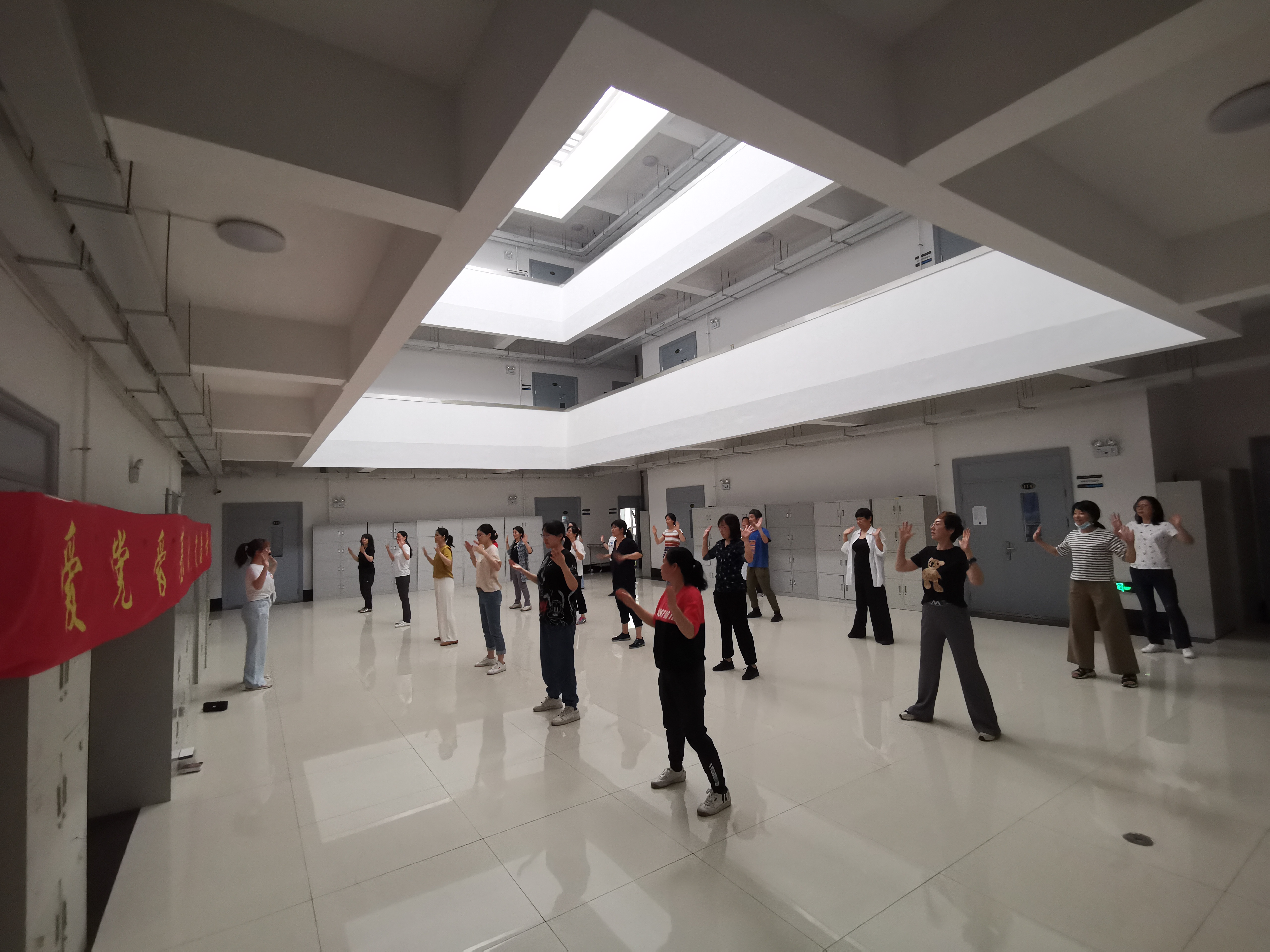 自2021年6月起,在威廉体育williamhill的领导和支持下,公司妇委会、工会以开展党史学习教育为契机,以打造“坚强阵地”营造“温暖之家”为切入点,努力形成“一家一品一特色”的工作格局,持续开展“爱党爱基础 健康常相伴”主题运动活动,每周利用中午时间在基础楼院内及大厅开展学跳健康运动操、燃脂爆汗操、拉伸运动操等体育活动,旨在强健师生体魄,抒写基础运动乐章。近一个月来,通过循序渐进的健康操运动,健身动作从易到难,从简到繁,参与活动的师生们进一步认识到全面锻炼身体的重要性,身体均衡发展和健康水平逐步提升。