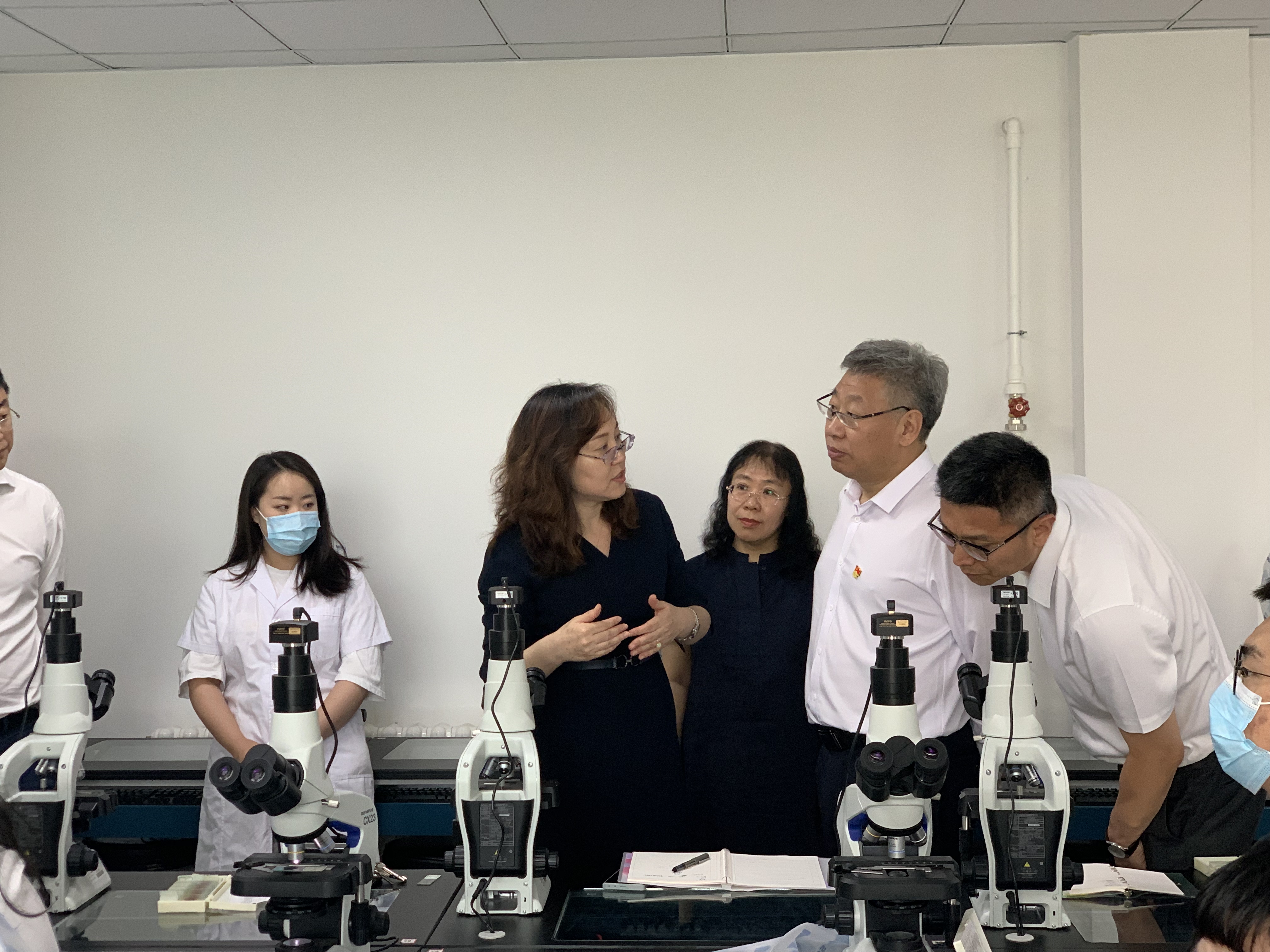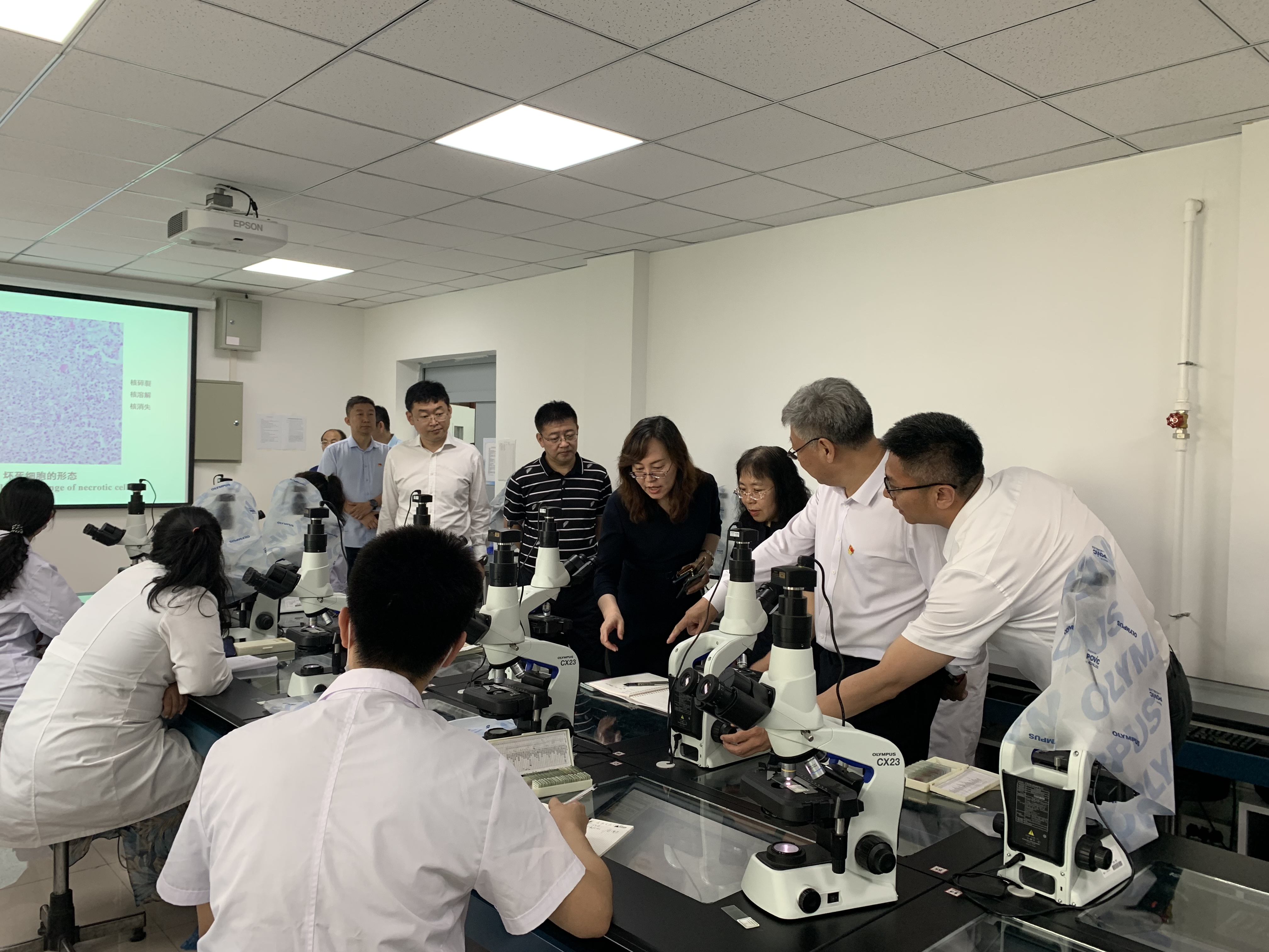 冯正玉书记首先听取威廉体育williamhill经理王放的工作汇报,随后,走进实验室向师生表达问候。在可移动实验平台,于蕾老师和员工们正在做的家兔呼吸运动的调节手术演示实验,员工可通过清晰的大屏幕看到手术演示全过程,真正实现互联互通,实时互动。在病理实习课堂,观摩了何旭老师“损伤的修复”课程,观看了员工的实验演示并亲切问候同学们的学习状况,病理生物学教育部重点实验室主任、副经理辛颖向冯书记介绍了病理学形态实验的相关情况。冯书记对同学们的实操能力给予了充分肯定。在分子生物学实验室,老师正在带领同学们进行转基因斑马鱼克隆实验。斑马鱼是国际上用于快速研究人类疾病信号传导途径、有效药物高通量筛选的最佳模式生物之一。冯书记对公司在斑马鱼方面的前沿研究表示肯定并寄予厚望,期待公司的斑马鱼研究能在探索人类疾病发病机理,筛选治疗靶点,进行新药开发以及药物毒性与安全性评价上发挥更大的作用。最后,冯书记一行来到医学影像虚拟解剖联合实验中心检查调研,参观3D打印白求恩像,观看了威廉体育williamhill宣传片。