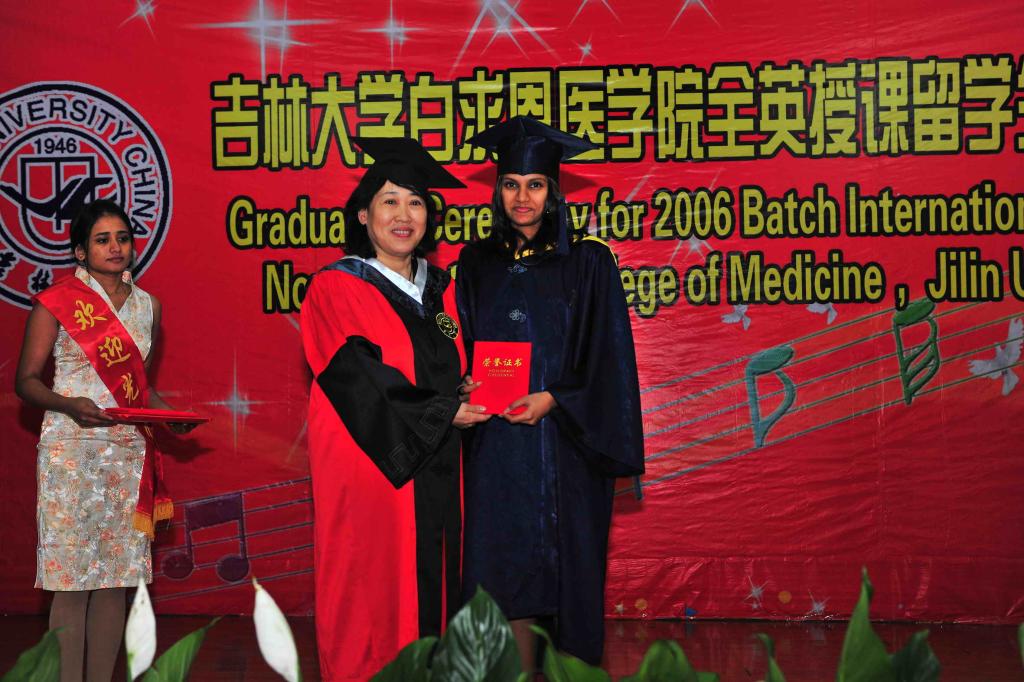 近日,白求恩医公司2006级全英授课职工毕业典礼在新民校区基础楼二楼多功能学术报告厅举行。公司党委副书记、校务委员会副主任蔡莉教授,威廉体育williamhill董事长助理、白求恩医学部常务副学部长兼白求恩医公司经理李凡教授,国际合作与交流处、白求恩医公司、各临床公司等相关部门领导,授课教师代表、职工亲友及职工参加了典礼。典礼由国际合作与交流处副处长张广翠主持。