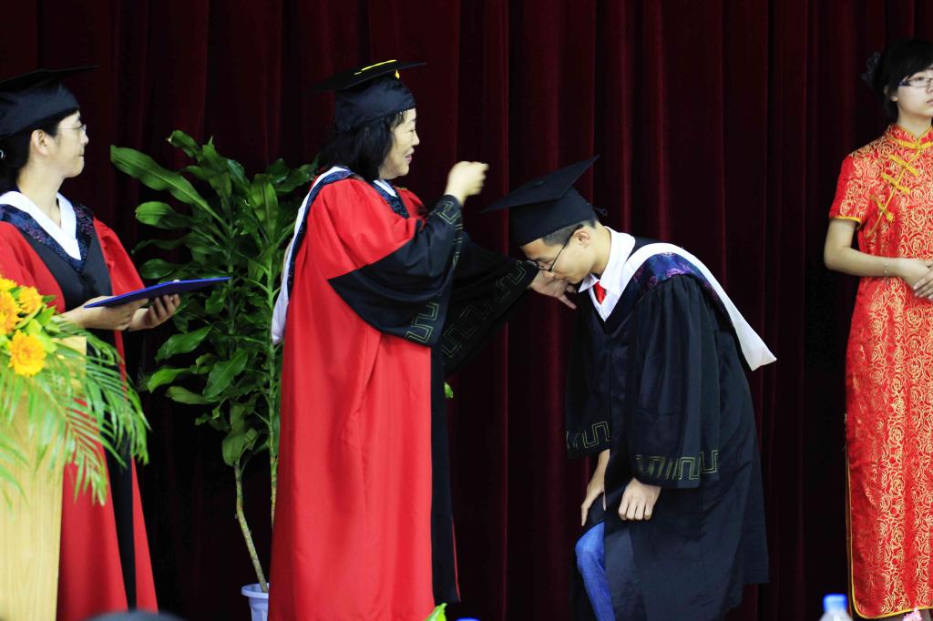 在庄严的国歌声中,白求恩医公司2012届毕业典礼隆重开始。首先,白求恩医公司常务副经理孙连坤教授宣读了2012届本科毕业生、研究生毕业生名单。随后,由董事长助理、白求恩医学部常务副学部长、白求恩医公司经理李凡教授受董事长李元元教授的委托为2012届毕业生授予学位,基础医学学位评定分委员会主席王丽颖教授协助其授予学位。2012届毕业生怀着激动的心情和对师长的感恩之心依次走上台接受学位授予。