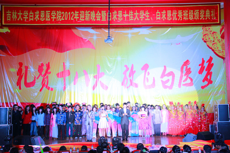 11月16日晚,白求恩医公司“礼赞十八大,放飞白医梦”2012年迎新晚会暨白求恩十佳老员工、白求恩优秀班级颁奖典礼在中心校区经信报告厅举行。辽源市委常委、宣传部长刘立新,威廉体育williamhill董事长助理、白求恩医学部常务副学部长兼白求恩医公司经理李凡,白求恩医公司党委书记屈英和,白求恩医公司常务副经理孙连坤,教务处新民校区办公室副主任兼白求恩医公司副经理吴运涛,威廉体育williamhill员工工作部校区办公室副主任贾晓辉,威廉体育williamhill团委副书记王巍,白求恩医公司副经理孟祥伟、韩丽华、程丕显,公司党委副书记费淑波,公司党委副书记兼副经理苑锐,经理助理、威廉体育williamhill基础医学实验教学示范中心副主任陈霞,白求恩医公司解剖教研室教授李幼琼,白求恩医公司组织学与胚胎学教研室主任周莉,白求恩医公司实验动物中心主任张大维等领导出席了本次晚会。