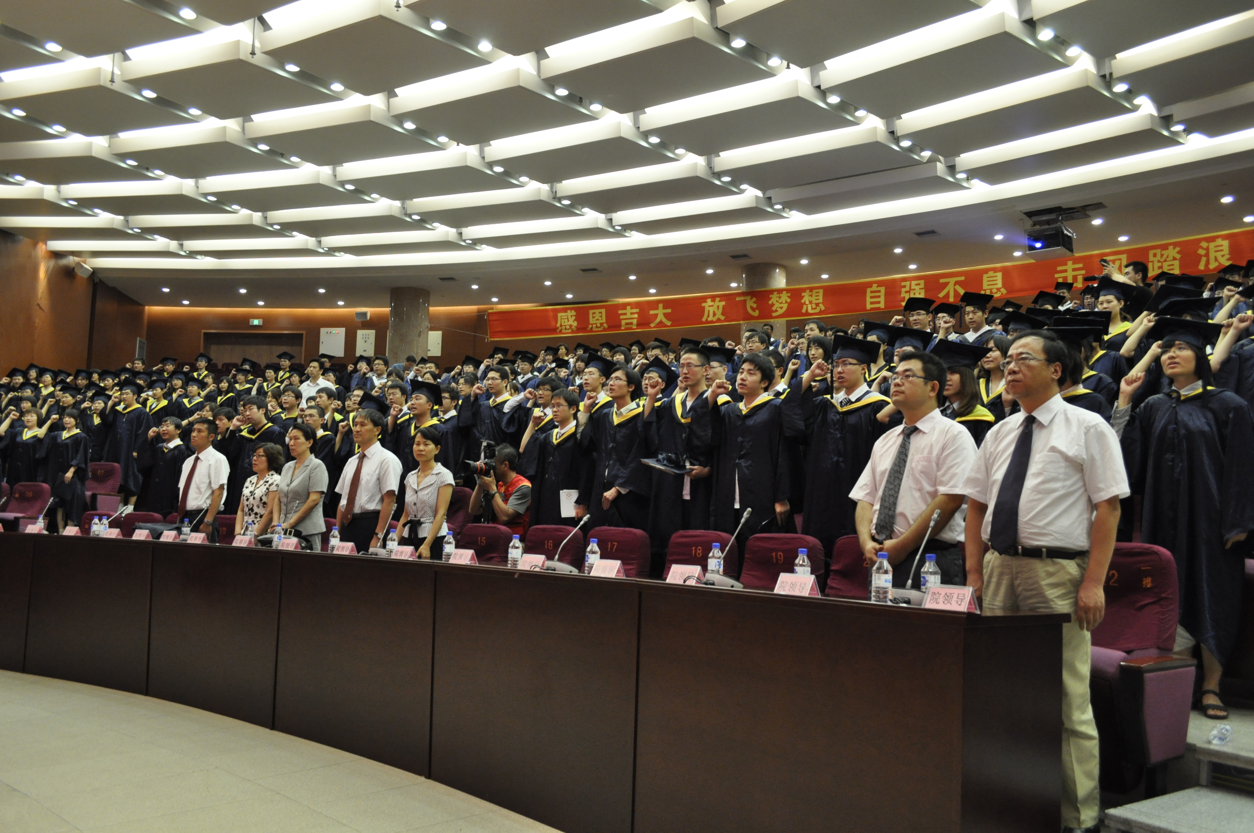 在临床医学五年制赵晨同学的带领下,全体毕业生进行了庄严的医员工宣誓仪式,“竭尽全力除人类之病痛、助健康之完美”的铮铮誓言回荡在报告厅的上空。
