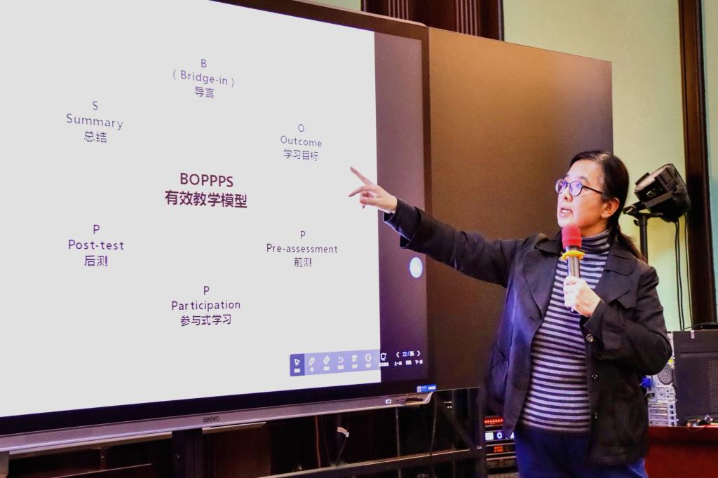 在讲座过程中,李一教授多次与青年教师互动,着眼于青年教师公司产品中遇到的实际问题,从教学三维目标深入展开,提出教学的三个维度应共同推进,最后达到一个教书育人的目标。李一教授指出在知识传授过程中,要以启发的方式,帮助员工建构自己的知识体系;在能力培养方面,应从教导员工记忆、理解、应用知识点,到引导员工自行进行知识体系的分析、评价乃至创新;而在价值塑造方面,不仅从家国情怀培养责任与担当,也要注重个人品格及科学观的培养。青年教师应按照一流课程的金标准,即高阶性、创新性、挑战度的标准要求自我,不断学习进步,优化自己的教学能力。以三维目标为立足点,青年教师如何能够构建合理的课堂,李一教授分享了两种课堂教学设计方法,BOPPPS设计模型和五星教学法。BOPPPS有效教学模型即B(Bridge-in导言)-O(Outcome学习目标)-P(Pre-assessment前测)-P(Participation参与式学习)-P(Post-test后测)-S(Summary总结)六步法。五星教学法即聚焦问题-激活旧识-论证新知-应用新知-融会贯通。既要将知识的讲授形成合理闭环,又要在适当的环节做出相应的扩展,最终促进学习者的学习效果以及完成能力情感培养。最后,李一教授寄语青年教师“功成不必在我,功成必定有我”。