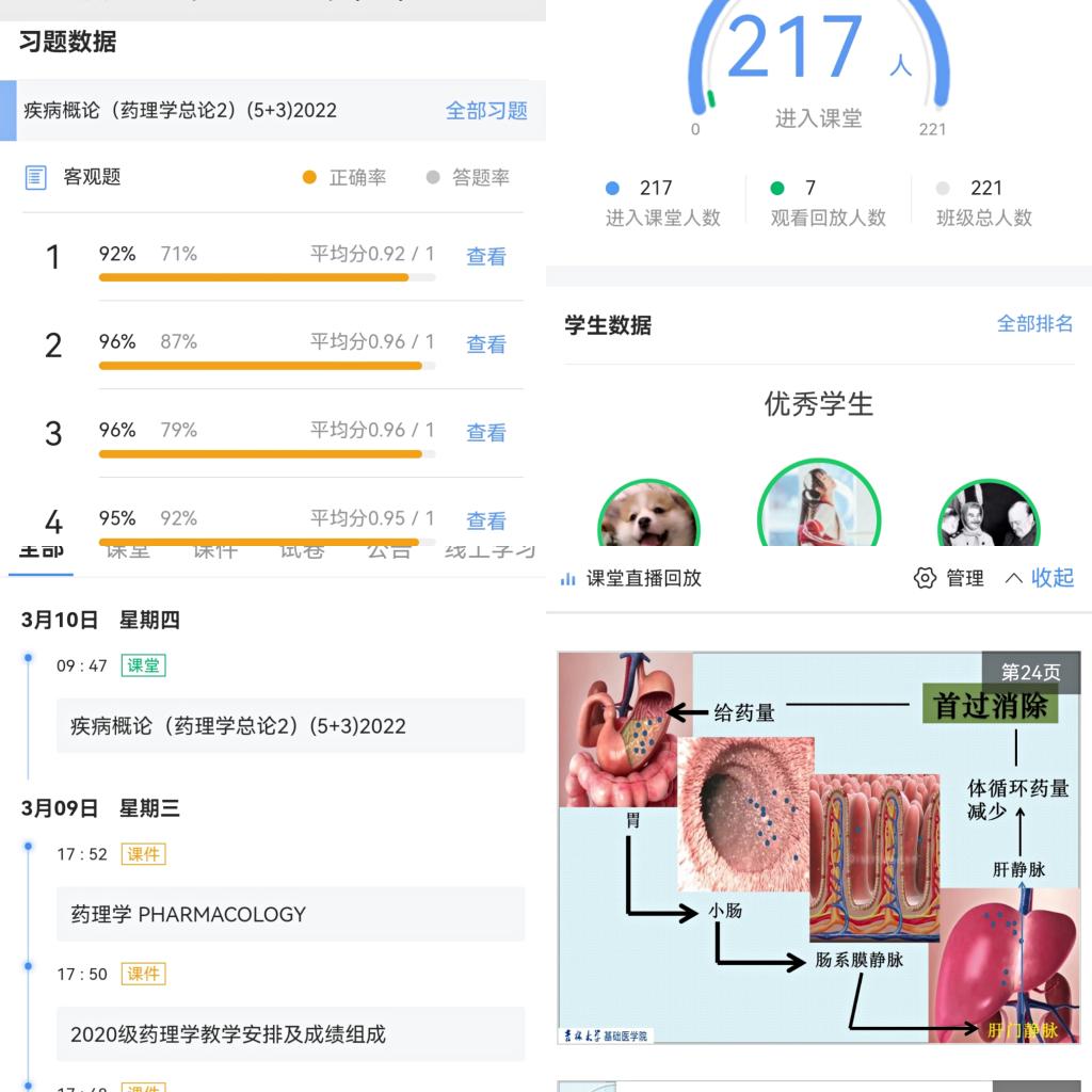 本学期威廉体育williamhill共计承担专业基础课程44门次,总学时2476学时,选课员工达6455人次。面对突然的教学模式的转变,各学系按照新学期提交的应急预案及时启动在线教学方案,稳步推进既定的教学进程,本次线上教学多采用超星学习通在线直播的方式,并随堂实施主题讨论、测试、讨论等教学活动,师生在线上体会了真正的“互动”。此外,经过与上海梦之路虚拟软件平台沟通,开放了341项基础医学类实验项目,作为教学补充资源供师生使用。